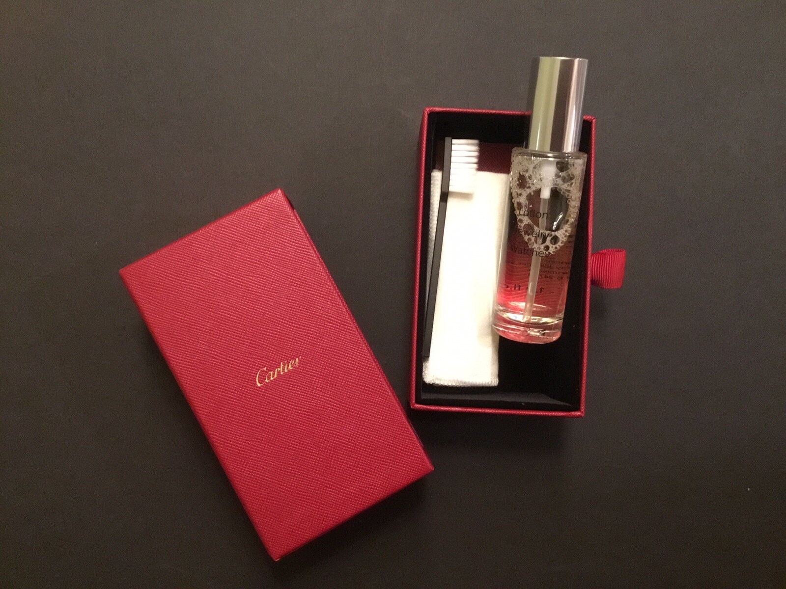 This Cartier jewelry cleaning kit is a must-have for keeping your precious pieces looking flawless. The set includes everything you need—spray cleaner, brush, cloth, and booklet—all neatly packed in an elegant box. Perfect for gold and platinum, the gentle yet effective formula ensures a brilliant shine without damage. Made in France, it’s authentic Cartier quality that’s compact yet long-lasting. Ideal for maintaining your favorite jewelry with ease!