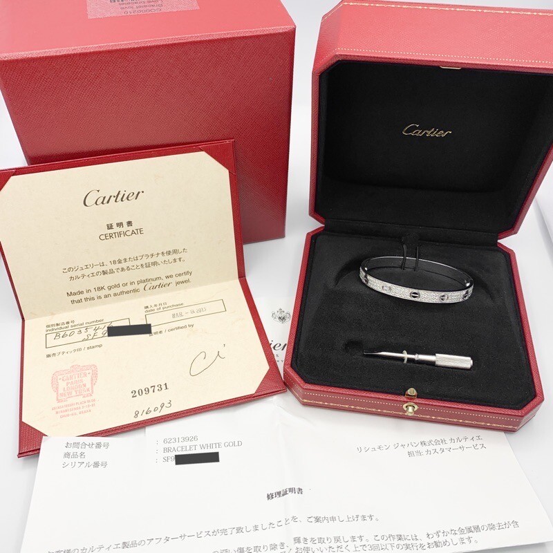 【Brand name】 CARTIER/Love bracelet #16 New mode WG diamond 【Comment】 Cartier's signature bracelet, the Love bracelet, debuted in 1969. The diamonds lined up all over the bracelet highlight the screws, making it a gorgeous piece for any occasion, from formal to casual. This new mode type bracelet is easy to put on and take off, and is also a popular pair accessory. It comes with a Cartier warranty and Cartier repair certificate from March 2013, and the exterior has been finished, so you can use it with peace of mind. 【Data】 ・Inquiry No.…K50424E ・Brand…CARTIER ・Condition...Polished finish、S-rank ・Model No.…- ・Serial…SF9※※※ ・Color…White gold ・Material…K18WG ・Weight…27.56g ・Notation size…16 ・Accessory…Cartier Warranty、Cartier Repair Certificate、Cartier genuine case、driver、Our guarantee ・Control No.…N506 【Attention】 ・This is an after-diamond product. We only handle diamonds that meet our standards, with clarity of VS or SI or above, cut of excellent or good or above, and are colorless, transparent, and highly shining, and are carefully finished by skilled craftsmen at our exclusive workshop (in Japan). ・Finished and polished, it can be used comfortably from the day it arrives. ・Some areas appear dark and in shadow due to the shooting environment. ・The colors and textures in the photos may differ from the actual product depending on the external environment and your device. Please Note Please click the photos to enlarge, check each photo very carefully for its details. International Buyers Import duties, taxes, and charges are not included in the item price or the shipping cost. These charges responsibilities will rest with the buyers. Please check with the customs office in local to determine what these additional costs will be before bidding or buying. Other information the seller may like to remind: These charges are normally collected by the freight (shipping) company or when you pick the item up, please do not confuse them with additional shipping charges. We do not lower the values of the items or describe the items as gifts. According to the regulations of the US and the International government, this conduct is prohibited. The dispatch method All Items are sent from Japan. The package with tracking number is covered by shipping insurance. Please note: Items may be required import duties, taxes, and additional charges. The recipient of the shipment is the importer on recording, who is responsible for all import fees in the destination country. If you have any questions about import duties and taxes, please contact your local customs office before buying and bidding. Return Policy Due to the nature of branded products, we do not accept returns or exchanges after the product has been shipped. Please check the product details before purchasing. In addition, our store's appraisers conduct strict double authentication to determine the authenticity of the product. We do not handle any counterfeit products. Although there have been no cases in the past, if the product is determined to be a counterfeit, we will refund the full amount. SHIPPING FREE delivery! Postage is free for the order by "buy it now",but postage will be charged separately when it is auction. We offer you worldwide FREE Shipping.Express Mail Service(EMS) or DHL with Tracking number provided. CONTACTS Please contact us via eBay message. If you have any problem or question, please contact us ASAP.
