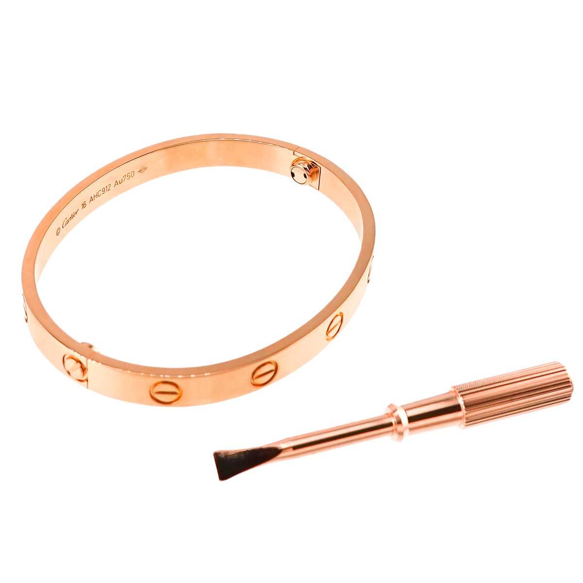 Product title Cartier Love Bracelet Bangle 18K Pink Gold 750 Size16 90256677 Item Description Title Cartier Love Bracelet Bangle 18K Pink Gold 750 Size16 90256677 Brand Name Cartier Style Bracelet Material 750 Pink Gold Size Marked:16 Inner circumference:5.9inch Width:(max.) 6.1mm Weight 28.7g(1.01oz) oz Engraved 750 Accessories Screw driver service certificate Condition Rank EXCELLENT Other - Please check it with a picture. ? CATEGORY BRAND LIST