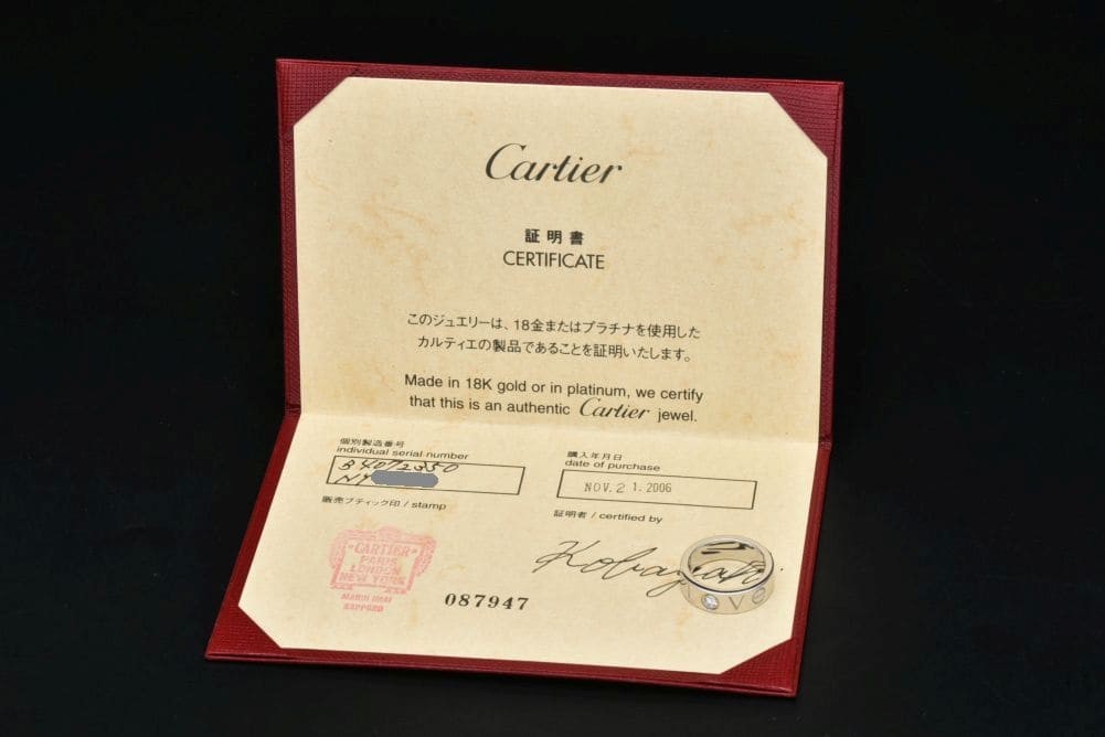 Cartier Love Ring Xmas Christmas Limited Diamond 18 K W Gold Size(US) 5.5 #00109 Description About This Items Size: 5.5 Ring width: approx. 5.5 mm Xmas 2006 Christmas Limited Edition Weight: 9.0g Condition Polished Excellent condition with almost no scratches visible to the naked eye. Included Items Certificate of Authenticity Information Products listed on this site are also sold on other websites at the same time. Depending on the timing of your order, the product may be sold out on other websites. We apologize in advance in the unlikely event that an item is sold out. Shipping We always send the item with a tracking number. So please place an order without any concern on delivery. You can always track the delivery status. Shipping is only available to the address registered in eBay. If you want us to send another address, please change your address on eBay and then place an order. Shipping is available from Monday to Friday. Weekends are not available because freight companies are closed. The shipping company is japan DHL. About Importer's Obligation Import duties, taxes, and charges are not included in the item price or shipping cost. These charges are the buyer's responsibility. Please check with your country's customs office to determine what these additional costs will be prior to bidding or buying. Thank you for your understanding.