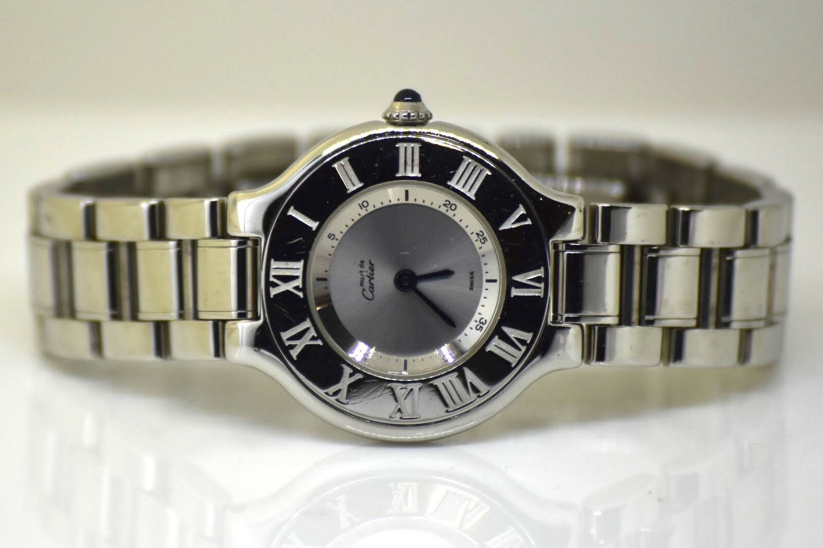 Cartier Must De 21 1340 Ladies Watch Stainless Steel Quartz Brand: Cartier Model: Must De 1340 Condition: Pre-Owned Movement: Quartz Band Material: Stainless Steel Clasp: Double Fold Clasp Case Material: Stainless Steel Case Size: 28 MM Dial: Silver Glass: Sapphire We can be contacted at any time through eBay messages if you have any questions, comments or product requests. We will respond to you within 24 hours and do our best to help you out! We encourage our customers to contact us with any questions or concerns! We'd like to be sure you are completely satisfied with your purchase. Shipping Items are usually shipped within 3 to 5 business days after payments are cleared. Clients must provide a proper postal address for shipping. International users please provide your phone number for shipping purposes. We are not responsible for any local or federal custom stamp duty. We do not ship to Nigeria, Indonesia, and Russia. We do not ship to unconfirmed addresses. Shipping & Handling Charges : USA (Free Shipping), Canada ($15.99), US Islands & Puerto Rico ($34.99), International ($54.99). Returns are accepted within 14 days from the shipping date. Returns may be subjected to a 15% restocking fee. No refunds for shipping and handling charges. Items must be sent in their original package and condition with the serial number of the item. Please allow 10 business days to issue a refund after it is received. Disclaimer All of our watches are a 100% authentic, with warranty provided by seller on custom watches. All measurements of the watch are approximate. Feel free to ask contact us regarding any questions or concerns you may have.