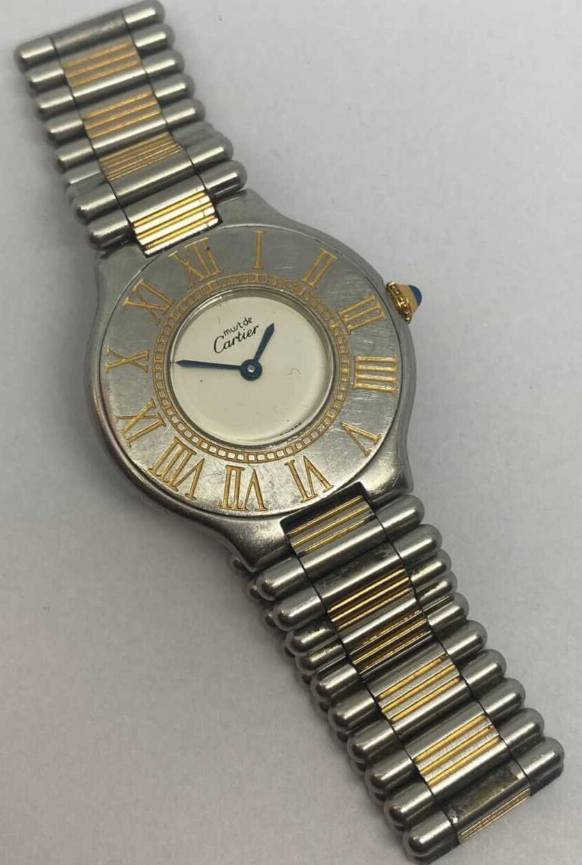 CARTIER MUST 21 LADIES WRISTWATCH STAINLESS STEEL & GOLD PLATED QUARTZ MOVEMENT WORKING PERFECT BRAND : CARTIER MODEL : MUST 21 MADE OF : Stainless Steel & GOLD PLATED YEAR : 1980 MOVEMENT : QUARTZ MOVEMENT BAND : STAINLESS STEEL / GOLD PLATED DIAMETER : 31MM PREOWNED WATCH IN GOOD CONDITION LAST SERVICE UNKNOWN. ORIGINAL 100% PLS CHECK HIGH RES PICTURES WORKING CORRECTLY NOT WATERPROOF TESTED WHAT YOU SEE IS WHAT YOU GETMMN PICTURES ARE PART OF DESCRIPTION ALL MY WATCHES ARE FOR SALE ALSO LOCALLY SO BID NOW! __________________________________ LOCATION & SHIPPING SUPERWATCHES LLC (SUPERWATCHESMIAMI) is based in Miami, FL. US. We also have an office in Buenos Aires, Argentina. Watch/Part is located in MIAMI DHL TO NORTH AMERICA : USD 45 DHL TO OTHER DESTINATIONS : USD 55 Custom duties and delays at destination are buyer´s responsibility. We handle safe and ship promptly after payment is received. Localy DHL is closed on saturdays to process shippings. SALES TAX: Pls note that ebay applies Tax sales for each State, SUPERWATCHES has nothing to do with tax collection. No import duties to the US. PAYMENTS & RETURN POLICY Ebay payment strongly preffered but Paypal and US bank wire is also possible for certain specific items. Payment is expected within 2 days for all auction and buy it now listings. 3rd day with no notice we´ll relist the item, sell it elsewhere or open an Unpaid Item Case. If you have an issue with the payment please contact us. Buyer has a 3 business day period to review the item and reach us if received not as described. We will refund item amount only after item is returned exactly as it was shipped. Sale and return shipping fee will not be refunded. MESSAGE US IF YOU HAVE ANY QUESTION OR COMMENT THANKS FOR SHOPPING AT SUPERWATCHES LLC SUPERWATCHESMIAMI CA-LO2