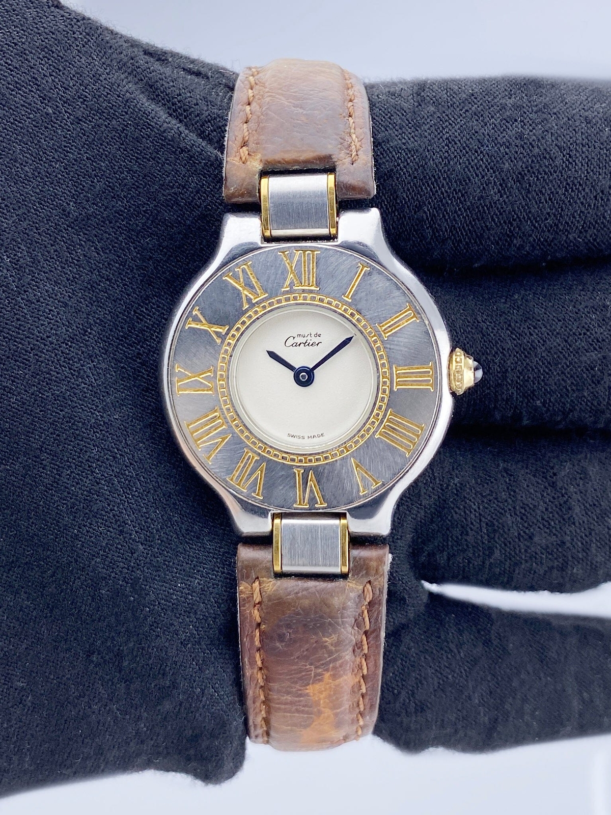 Cartier Must 21 W1005120 Off-White Dial Small Ladies Watch TOP BRANDS Rolex Audemars Piguet Omega Patek Philippe Cartier Breitling All Cartier Must 21 W1005120 Ladies Watch. 28mm stainless steel case. Stainless steel bezel with engraving Roman numeral hour makers. Off-White dial with blue steel hands. Brown leather strap with deployment clasp. Will fit up to a 6.25-inch wrist. Sapphire crystal. Stainless steel case back. Quartz: Battery powered movement. This watch is backed by our two year warranty. Phigora Guarantee Two Years Warranty Free Shipping & Returns Specifications SKU CW1005120FWRS-1 Model Must 21 Gender Ladies Watch Style Luxury Shape Round Case Material Stainless Steel Movement Quartz: Battery Condition Quartz: Battery Dial Color Silver Band Material Steel-&-18k-yellow-gold Age undefined Year undefined Box/Papers None Wrist size (IN) 6.25 Payment Shipping Returns Warranty Payment Option: Buyers can pay using PayPal Credit or Bill Me Later. Taxes: New York Residents are required to pay 8.875% Local Sales Tax. Questions: Feel free to contact us with any questions or concerns; customer service and satisfaction is very important to us. Shipping Terms: All items are shipped from our facility within 2 business days from the date payment is received, certain circumstances handling time will be longer in such cases you will be notified. Please be patient as this processing time is necessary for our quality control team. As these watches sit in our auction safe prior to being sold, this processing time allows us to re-examine the watch to make sure it is still in the same condition as described. It also allows us to do a final 24 to 48-hour timing to ensure accuracy. This allows us to correct any timing issues prior to shipping. All shipments usually ship with FedEx. All packages are insured to the full purchase price. Buyers can pay using PayPal Credit or Bill Me Later. Expedited Shipping: If buyers require the item to be shipped within 24 hours of purchase, please notify us immediately after payment is made. All packages are required to be signed by an adult! Most Countries charge custom duties and taxes on items being imported from the USA The Buyer pays ALL import duties, taxes, and fees. These charges are your responsibility. Packages must clear customs and this will take a few days. Most countries charge customs duties, taxes, and fees on items being imported from the USA. You are responsible to know your Country's importing laws and taxes. Import duties, taxes, and fees are NOT included in the item price or shipping charges. Please check with your country's customs office to determine what these additional costs will be prior to buying. Duties, taxes, and fees are normally collected by the delivering freight (shipping) company or when you pick the item up & do NOT confuse them for additional shipping charges. We declare all items as a purchase for the purchase price amount. We accept returns for any reason within 30 days of receiving the item. The purchase price, excluding the original shipping cost, will be refunded. The buyer is responsible for return shipping costs. This warranty applies to the movement of the watch only. Watch movements are warrantied to perform as described in the Phigora item description during the warranty period. This warranty does not include the battery, strap, links, clasp, case, crown, bezel, dial, hands, screws, crystal and/or diamonds. Damage to a watch due to accident, neglect or mistreatment is not covered by this warranty. Mistreatment includes modification of the watch through the addition or substitution of parts or accessories not provided by Phigora and will void this warranty. Also not included is the loss or theft of the watch or any damage done by loss or theft. Damage caused by fire, pressure or natural disaster is not covered. This warranty does not cover any water damages including crystal fogginess, movement damage, dial or bezel damage, seals, gaskets, liquid penetration, and any issues pertaining to water. This warranty replaces the original manufacturer’s warranty. WHO IS PHIGORA? Phigora is your complete source for certified pre-owned luxury watches. We are here to help you purchase, sell, trade, and repair your watch. Our mission at Phigora is to deliver and service pre-owned luxury watches while providing the highest caliber of customer care and watch education .