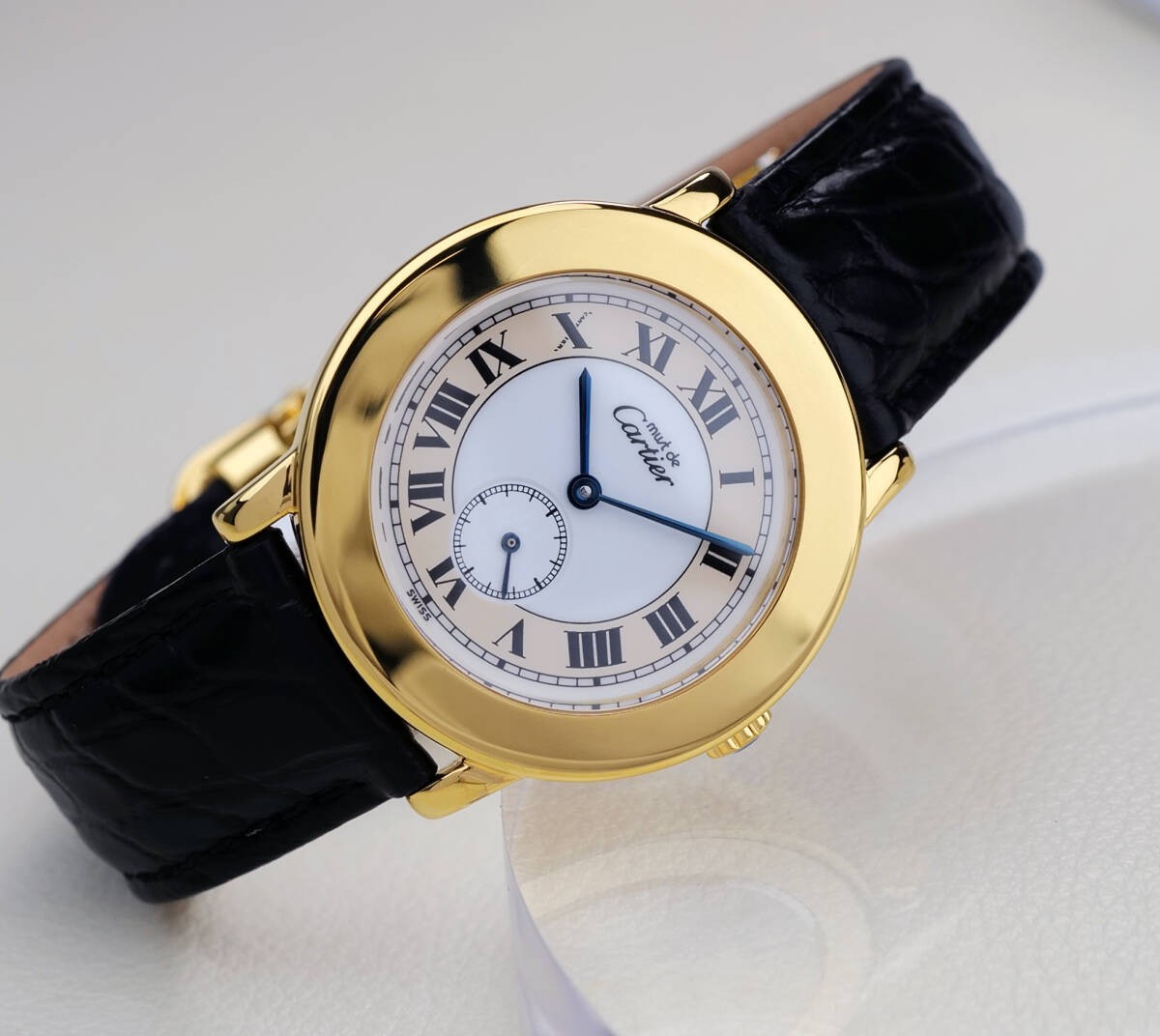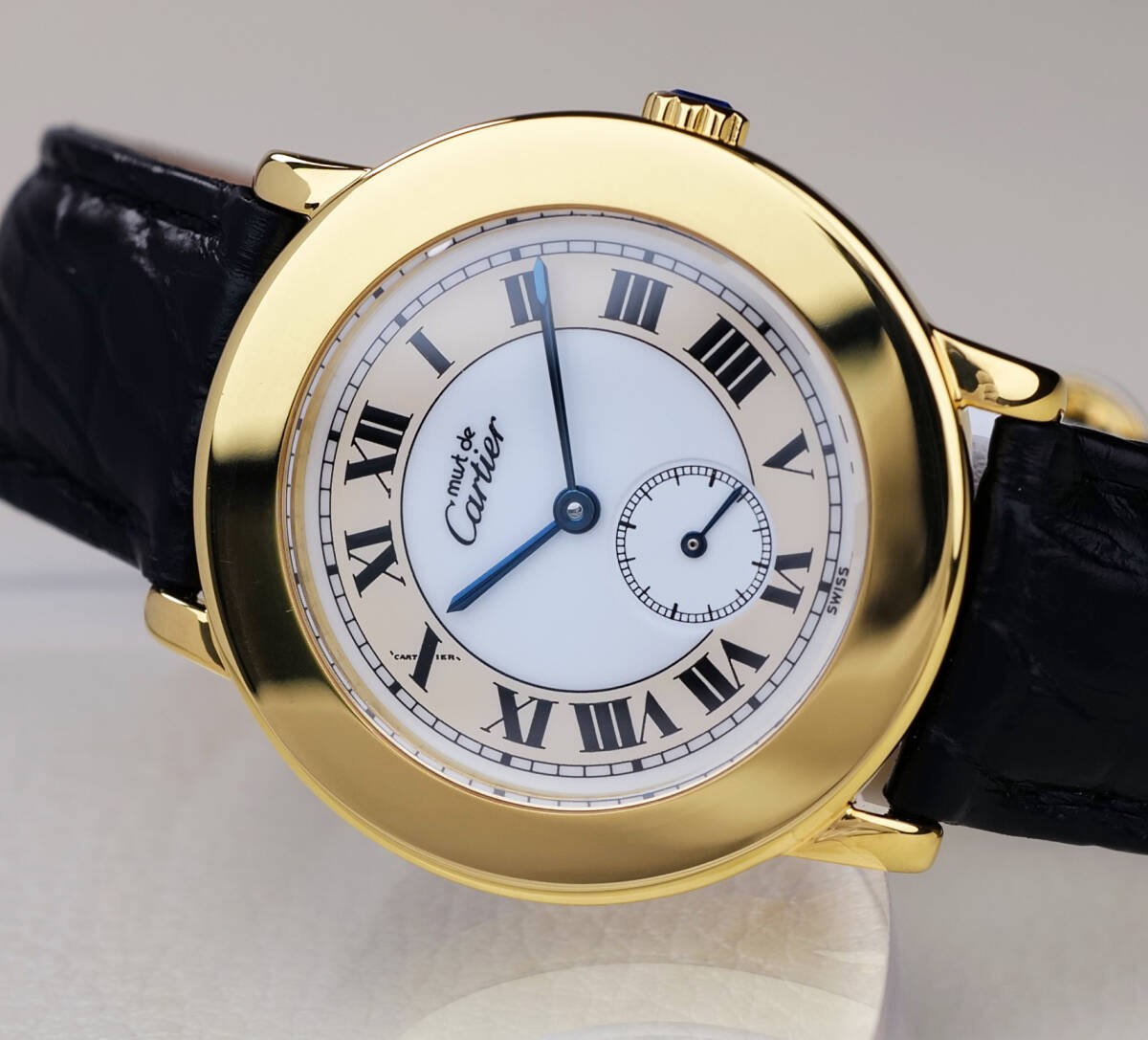 Cartier Must Ronde II Small Second Watch Blue Hands Roman Numerals Used From Ja Key Features This Cartier Must Ronde II Small Second LM watch exudes classic elegance with its 18K gold coating and refined design. Features include a 32mm case width (excluding crown), a black genuine leather strap with a Cartier original D-buckle, and a precise quartz movement (battery replaced in June 2025). The watch showcases Roman numeral hour markers, blue sword-shaped hands, and signature railway minute markers. The case has been professionally refinished, maintaining a beautiful appearance. Comes with a Cartier storage case. Perfect for those seeking timeless luxury. Item Specifics: C:Type: Watch C:Reference Number: Not specified C:Customized: No C:Style: Classic C:Model: Must Ronde II Small Second LM C:Features: Small Second, Roman Numerals, Blue Hands C:Movement: Quartz C:Dial Color: White C:Band Color: Black C:Bezel Color: Gold C:Case Color: Gold Specifications Brand cartier Country Switzerland Country/Region of Manufacture Switzerland Product Description Item Title Cartier Masto Rondo Ii Small Second Lm Payment Supports managed payments Please pay within 5 days after auction is finished. About Us We are located in Japan. It's our pleasure to make you happy by proposing our recommend item. If you have any questions or request about items, please feel free to ask us. International Buyers - Please Note: -Import duties, taxes, and charges are not included in the item price or shipping charges. These charges are the buyer's responsibility. -Please check with your country's customs office to determine what these additional costs will be prior to bidding/buying. -These charges are normally collected by the delivering freight (shipping) company or when you pick the item up - do not confuse them for additional shipping charges. -We do not mark merchandise values below value or mark items as - gifts - The US and International government regulations prohibit such behavior. Thank you for your understanding.