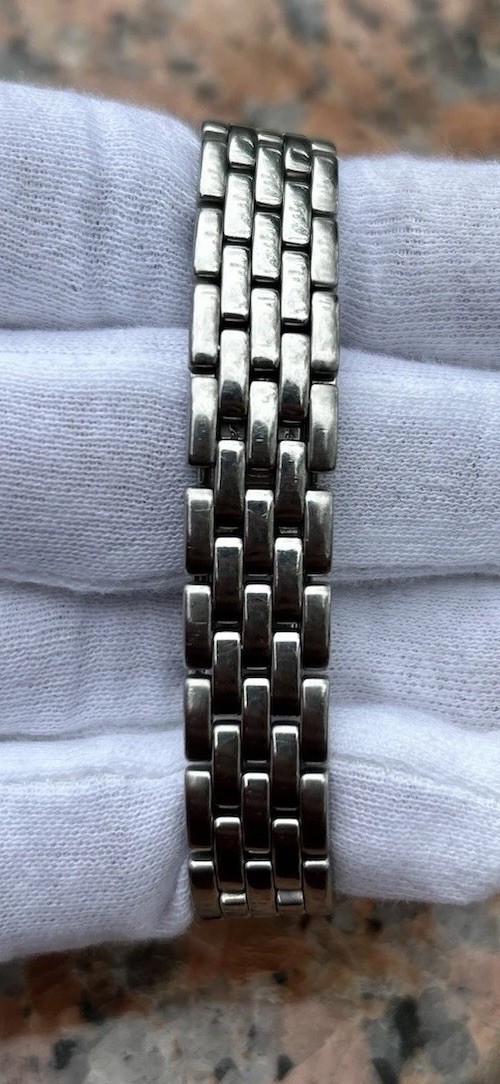 Mazal718 All Items undergo a professional inspection prior to shipment. Please review the condition and photos carefully prior to making a purchase. If your account has fewer than 10 feedback ratings, please contact us before buying. *International Buyers* Import duties, taxes, and additional chargers are not factored into the items price or shipping cost. These costs are the responsibility of the buyer. Please check with your country's customs office to understand what these extra fees might be before purchasing. customs fees are usually billed by the shipping company or collected when you retrieve the item. we will dispatch your order within 2-3 business days after receiving payment. PRODUCT DETAILS : Brand CARTIER Model panthere Reference Number 1320 Serial Number cc206144 Gender Ladies Metal Stainless Steel Case Size 22.00MM Wrist Size This watch will currently comfortably fit the average female wrist up to 5.5 - 6 inches. Please contact us prior to purchasing this item if the removal or the purchase of additional links is necessary. Movement Original CARTIER Swiss Quartz Movement. (New Battery) Crystal Original CARTIER Scratch-Resistant glass in great condition. Dial Original CARTIER White Dial with roman numeral style. Blue hands. Bezel Original CARTIER Stainless Steel bezel in great condition. Band Original CARTIER STAINLESS STEAL BAND.