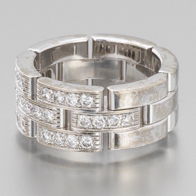 Beautiful! Like New! Cartier Panthere Link Diamond Band Platinum 28 Diamonds weighing 0.52 Carat of H-VS2 Quality Size 4.5 11.7 grams Cartier design of a square chain link eternity bands 100% Authentic Guaranteed! Ships from Cleveland, OH. Comes with a Complimentary polishing cloth from DeWitt's