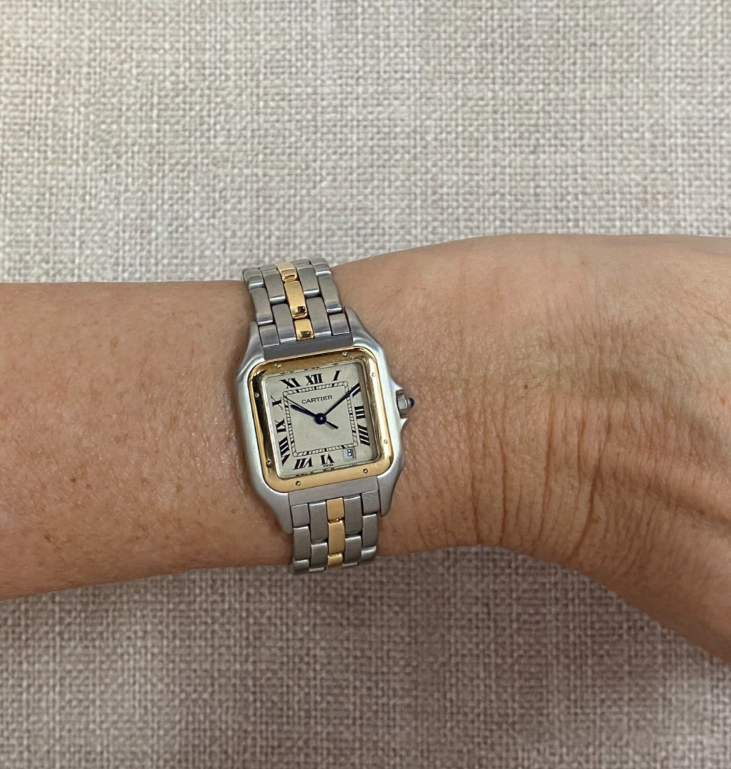 Contact us Have a question? Contact us. Free Shipping Complimentary next day delivery fully insured shipping. BUYER PROTECTION Security guaranteed with eBay buyer protection. Cartier Panthere Medium 1 Row 18k Yellow Gold & Steel Ladies 27mm Watch 839490 Very good preowned ladies medium Cartier Panthère in 18k yellow gold and stainless steel features silver dial with Roman numerals and date at 5 o'clock. Comes on Cartier stainless steel and 1 row of 18k yellow gold links bracelet. Fits up to 6-1/4 inch wrist. Minor scratches typical of the age. Please see actual pictures for details. We are a family owned brick and mortar Jewelry Store specializing in fine new and pre-owned jewelry and watches. Each of our pre-owned watches is fully checked, serviced, and detailed. All items guaranteed authentic. Specs Brand Cartier Model Panthere Reference 839490 Condition Pre-owned Warranty 1 Year JIT Warranty Band Material 18k Yellow Gold & Stainless Steel Band Size Fits up to 6.25" (16cm) wrist Case Material Steel with 18k Yellow Gold Bezel Dial Color Silver Case Size 27mm Box Papers Not Included Movement Quartz Shipping Payment About Returns Contact Your package will be shipped within one business day of your payment. We ship Federal Express Priority Overnight with tracking provided. FedEx promises to deliver Priority Overnight packages the following business day no later than 10:30AM. Professionally packaged Fully insured Delivery by 10:30 AM Track your package via FedEx Saturday Delivery Available upon Request Signature Required Residential-Shipping : ( If not sent the Ebay- 3RD party Authenticator) C.O.D FEDEX Delivery will be applied. FedEX will release a package once the recipient provides a personal check only for the Value of $5.00. (Instructions to follow) The $5.00 check will then be shipped back to the shipper to Void and Destroy upon its arrival. International Buyers – Please Note: Import duties, taxes and charges are not included in the item price or shipping charges. These charges are the buyer’s responsibility. Please check with your country’s customs office to determine what these additional costs will be prior to bidding/buying. We do not ship to the following locations: Bahrain, Iraq, Israel, Jordan, Kuwait, Lebanon, Oman, Qatar, Saudi Arabia, Turkey, Yemen, South America, Brunei Darussalam, Cambodia, Indonesia, Laos, Macau, Malaysia, Philippines, Thailand, Vietnam, Afghanistan, Armenia, Azerbaijan Republic, Bangladesh, Bhutan, China, Georgia, India, Kazakhstan, Kyrgyzstan, Maldives, Mongolia, Nepal, Pakistan, Tajikistan, Turkmenistan, Uzbekistan, Bosnia and Herzegovina, Bulgaria, Croatia, Republic of, Czech Republic, Estonia, Russian Federation, Ukraine, Africa, Anguilla, Antigua and Barbuda, Aruba, Bahamas, Barbados, Belize, British Virgin Islands, Cayman Islands, Costa Rica, Dominica, Dominican Republic, El Salvador, Grenada, Guadeloupe, Guatemala, Haiti, Honduras, Martinique, Montserrat, Netherlands Antilles, Nicaragua, Panama, Saint Kitts-Nevis, Saint Lucia, Saint Vincent and the Grenadines, Turks and Caicos Islands, Mexico, PO Box. We accept the following forms of payment: PayPal American Express* Bank Wire Check For mutual security we prefer PayPal. If you want to choose a different payment method please contact us. We are a family owned business specializing in fine new and pre-owned jewelry and watches. We are real people, working at a brick and mortar location, at your service. Each of our pre-owned watches is fully checked, serviced, and detailed. Pre-owned watches powered by an automatic movement are backed by a two year warranty, and quartz powered watches are covered for one year. Please do not hesitate to get in touch. We love what we do and our main goal is your satisfaction. Returns are accepted within 30 days of receipt for pre-owned watches & jewelry. Please do not use or alter the item in any way as this will void your return. We do not accept returns on new watches & jewelry. Please ensure you are purchasing the accurate item. Return shipping is paid by the buyer. Please contact us with any questions you may have. We are here to help you throughout your online shopping experience! You are welcome to visit our showroom, featuring one of a kind watches and jewelry. We have the largest selection of new and pre-owned watches and jewelry in South Florida!