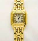 - FOR SALE - 100% GUARANTEED AUTHENTIC Cartier Panthere Mini 18k Yellow Gold Quartz Ladies Watch Ref: W25034N3 Please note that you will be purchasing a pre-owned Cartier Panthere Mini 18k Yellow Gold Quartz Silver Ladies Watch. The watch is in good condition, but has not been polished, so expect some slight scratches/scuffs on the band from common use. The watch will arrive as-is without any original packaging or papers. It will fit up to a ~6.25" wrist and will not include any additional links. Please refer to the photographs provided for a greater general idea of the cosmetic quality of the watch. A MANDATORY ADULT SIGNATURE WILL BE REQUIRED UPON DELIVERY Thank you! FREE SHIPPING TO LOWER 48 STATES