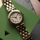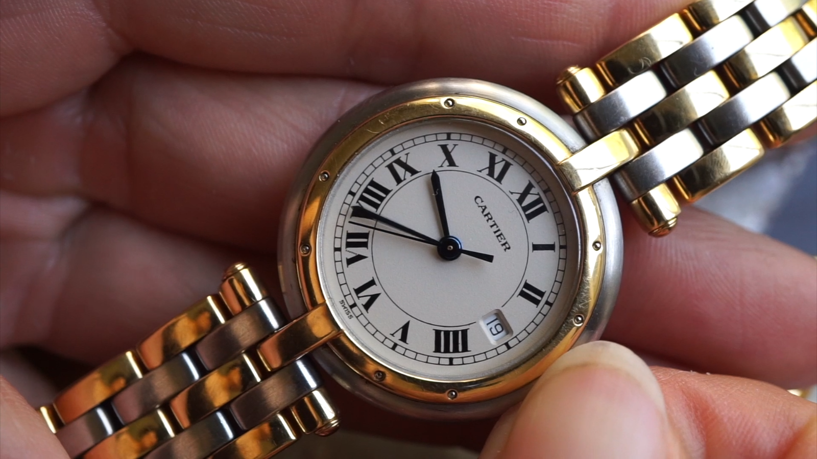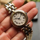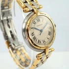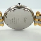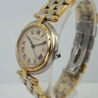 Cartier Panthere Vendome 3 Row 18k Gold & Steel with Date 30 mm 1990s A preowned Cartier Vendome in stainless steel and 18k yellow gold, crafted during the 1990s. Classic vendome case in 30 mm size featuring a white grained dial with black Roman numeral hour indices with secret Cartier logo at 7 o’clock, outer minute track, blued-steel sword-shaped hands and sweep second, and date aperture for 3 o’clock. Powered by a quartz movement. Fitted with a Cartier steel and 3-row gold bracelet reminiscent of the Panthere, with butterfly closure. A nice little classic serving a variety of occasions. Original dial, hands, and sapphire crown. Case measures 30 x 37 mm, 6.5 mm thick. Cartier quartz movement. 16320 Serial 1839xx Cartier steel and 18k gold bracelets fits 6 7/8 inches approximately. 15 mm lug width. Only watch itself. Modeled on 6 inch wrist. This Cartier Vendome watch has had a new battery installed by our watchmaker, it runs and is ready to wear and be enjoyed. Guaranteed original, please ask all questions before you buy. *Please view all of our photos as they are part of our description. Please ask for more information if interested. See our high end watch auctions. By bidding on our item you agree to our listed terms, thank you. Please join our eBay Newsletter for weekly updates as more items are continually uploaded to our site. Payments : Payments are due in 2 days. Direct eBay Payments only. eBay does collect sales tax. Buyers pay insured shipping. International buyers: We cannot ship to China, Spain or Russia at this time, we apologize for any inconvenience. We ship insured international -No gifts, Low values, etc... All customs & duties are your responsibility. Import duties, taxes and charges are not included in the item’s shipping costs. Please check with your country’s custom regulations to determine additional charges prior to buying or bidding, these charges are normally collected by the delivery freight (shipping) company or when you collect the item. Please do not confuse them for additional shipping charges from us.