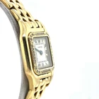 Cartier Panthere Vintage Small Quartz 22mm 18k YellowGold Diamond Bezel WF3070B9 Cartier Panthere Vintage Small Quartz 22mm 18k YellowGold Diamond Bezel WF3070B9 Description 18kt yellow gold case with a 18kt yellow gold bracelet. Fixed gold-tone diamond set bezel. White dial with Roman numeral hour markers. Dial Type: Analog. Quartz movement. Scratch resistant sapphire crystal. Pull / push crown. Transparent case back. Square case shape. Case size: 23 mm. Functions: hour, minute. Luxury watch style. Watch label: Swiss Made. Pre-owned Cartier Panthere White Dial Ladies Watch WF3070B9. General Collection Name Panthere Information Brand Cartier Model WF3070B9 Gender Womens Watch Label Swiss Made Movement Quartz Condition Information Box No Preowned Item Condition Excellent Papers No Comments Cartier Yellow Gold Panthere Diamond Watch Case Case Size 23 mm Case Material 18kt Yellow Gold Case Shape Square Case Back Transparent Dial Type Analog Dial Color White Crystal Scratch Resistant Sapphire Dial Markers Roman Numeral Bezel Fixed Bezel Color Gold-tone Bezel Material Diamond Set Crown Pull / Push Band Band Type Bracelet Band Material 18kt Yellow Gold Features Functions Hour, Minute Watch Features Diamond, Gold, Analog B1096400 300+ Listing Templates! Auctiva gets you noticed! The complete eBay Selling Solution. Track Page Views With Auctiva's Counter