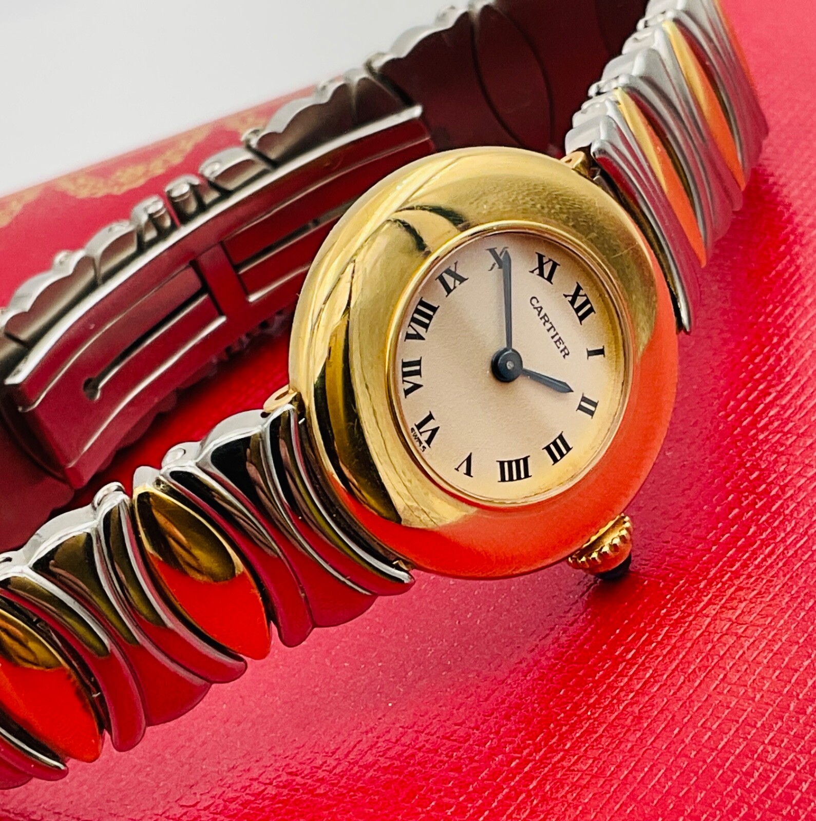 Cartier Paris Colisee 18K Yellow Gold & Stainless Steel Quartz Watch & Box • Cartier Paris Colisee • Quartz Movement • 18K Yellow Gold Case • Synthetic Sapphire Crystal • 18K Yellow Gold & Stainless Steel Bracelet • Case Size 24mm • Ivory Dial with Black Roman Numerals • Deployment Buckle • Swiss Made • Water Proof Comes With Cartier Box as Pictured! Guaranteed 100% Authentic or Your Money back! Look at my feedback for OVER 26 years and Buy with total confidence! We do not advise you to wait until the end of the auction to bid on this piece. This item is also for sale now in our retail store until a bid is placed. If you are in the South Florida area you can always come in and look at my merchandise. Be sure to check out my other auctions. Look at my feedback and buy with total confidence!