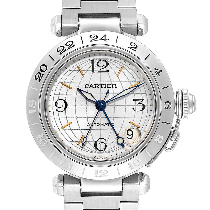 Give us a call (212) 302-1678 Send us a message Our Store Seller Profile Feedback About us Contact Cartier Pasha GMT Dual Timezone Globe Edition Cartier Pasha GMT 35mm Dual Timezone Stainless Steel on Bracelet, Silver Globe Dial with Gold Hour Markers and Luminous Hands, Date Indicator at 5 O'Clock, Self-Winding Automatic Movement, Stainless Steel Pasha Bracelet with Hidden Double Fold-Over Deployant Buckle. Gorgeous Silver Dial With Black Arabic Numeral And Gold Index Hour Markers Which Are Accompanied By Blued-Steel Hands. A Globe Pattern Is Infused Into The Silver Dial Which Is Appropriate For This GMT Watch. A Magnified Date Window Is Located Between The 4 O'clock And 5 O'clock Hour Markers. Displaying The GMT Function Is The Large Central Arrow-Head Hand. Cartier exists where timekeeping meets the world of exquisite jewelry. Across these exceptional collections, Cartier strives to present a perfect equilibrium between form and function, utilizing an astute combination of modern innovation and esteemed watchmaking tradition. The Pasha is a highly sought-after classic. It was created by Louis Cartier in the 1930’s for the Pasha of Marrakech, who wished for a watch that was both water-resistant for his daily swims as well as elegant enough for royal duties. The Pasha has since seen countless reinterpretations, each characterized by a sense of simple elegance. Reference No. W31078M7 This Timepiece is in an Pristine Condition Complete with Box & Papers. Two-Year Extended Warranty from Date of Purchase. Full Value Appriasal. Payment (If paying with Credit Card, you must be within the United States and your billing and ship to address must be the same) - Photo ID is required to process payment PayPal: PayPal users must be Verified and Confirmed. eBay Payment Method: If paying with eBay Payment Method, please keep in mind we would need to ship directly to the Authenticator first, after the item has been authenticated the authenticator will then have the watch shipped to you. Process of this transaction will most likely take an additional 24 hours. Bank Wire Transfers: We Take Bank to Bank transfers as well. If you would like to purchase an item via Bank Wire. Please purchase the item on eBay, once the wire is received, we will mark the item as paid and have it shipped directly to you. Please keep in mind using this method you will not be able to use eBay Authentication Program. Payments: We will only ship to the PayPal confirmed address. It is a requirement of PayPal in order to meet their protection policy. By adhering to their safety regulations, we are able to conduct safer business and as a result sell our items at lower prices. Sales Tax: Recent changes to sales tax laws for remote sellers (e-commerce businesses) require us to collect sales tax on orders shipped into the states. Sales tax is calculated at checkout. If you have any questions of concerns, please feel free to message us. Shipping WE SHIP WORLDWIDE. All International Buyers must inquire with us prior to bidding. If you have any questions or concerns, please feel free to give us a call or eBay message us, we will be more than happy to assist you. Sales Tax: Recent changes to sales tax laws for remote sellers (e-commerce businesses) require us to collect sales tax on orders shipped into the states. Sales tax is calculated at checkout. If you have any questions of concerns, please feel free to message us. Import duties, taxes, and charges are NOT INCLUDED in the item price or shipping charges. These charges are the buyer's responsibility. Please check with your country's customs office to determine what these additional costs will be prior to bidding / buying. These charges are normally collected by the delivering freight (shipping) company or when you pick the item up; do not confuse them for additional shipping charges. We do not mark merchandise values below value or mark items as "gifts". U.S. and International government regulations prohibit such behavior. We reserve the right to use the most secure shipping method and/or company to ship your purchase. Calculated shipping and insurance is an estimate only and may not reflect the actual cost of shipping and insurance. Once we have your shipping address, we can give you an exact cost for shipping and insurance. If you would like this information prior to bidding, please contact us. We do not ship to Indonesia or Malaysia. Returns All sales are final. Please check to make sure that the watch you are purchasing is the make and model which you are looking for. We are here to assist you in your buying process! Under special circumstances and we agree to accept the return of the item purchased, there will be a 10% restocking fee. The customer is responsible for all freight charges for items returned back to us. We recommend a carrier with a tracking number to verify package delivery. Insurance is highly recommended for the return package. All returns not accepted will be mailed back to the customer, at the customer's expense, via fully insured overnight shipping. The shipping charges both ways is covered by the purchaser. Other Motion in Time sells only 100% Authentic watches, but is not and does not claim to be an Authorized Dealer of any brand advertised on our eBay Page. Because we are not an Authorized Dealer, we cannot advertise the watches we sell as “brand new”. For all intents and purposes, the watches we sell are used, but are in immaculate – perfect – never sold or worn condition. We specialize in discounting only the highest-grade 100% timepieces. We trust these timepieces to be of such high caliber that we warranty all “unworn condition” watches for a period of two-years. Manufacture warranty no longer attaches. Motion in Time, Inc. is the sole warrantor of these watches. Motion in Time, Inc. is not affiliated with any watch maker. All watches and watch items sold are preowned . We encourage you to call us if you have any questions. +1 (212) 302-1678 U