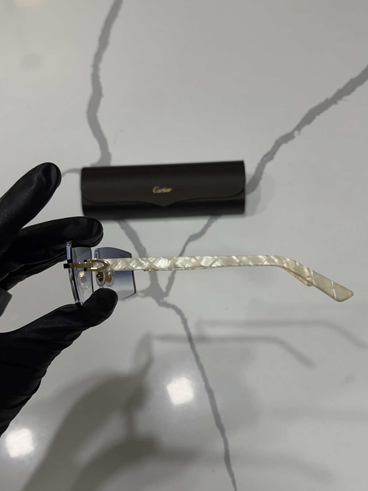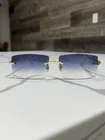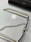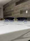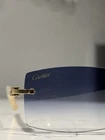 These Cartier rimless sunglasses are pure elegance! The pearl white lenses and gold frame give them a luxurious, timeless look that instantly elevates any outfit. Lightweight yet sturdy, they fit comfortably and feel high-end. Perfect for adding a touch of sophistication to your style—definitely worth it for a pre-owned luxury piece in such great condition. A must-have for any accessory lover!