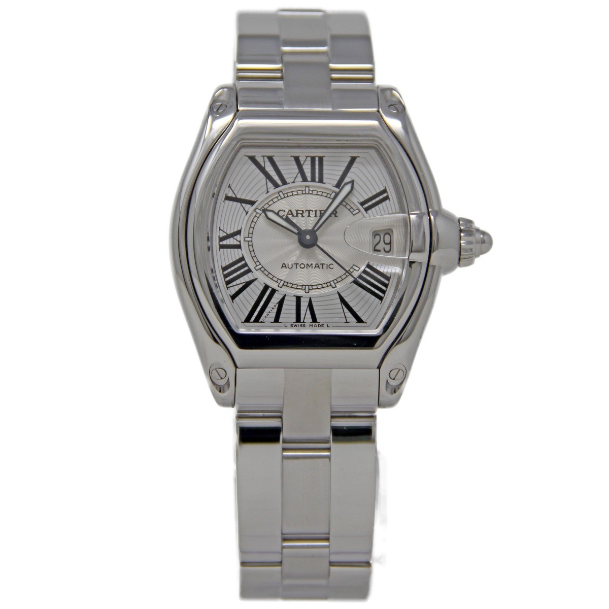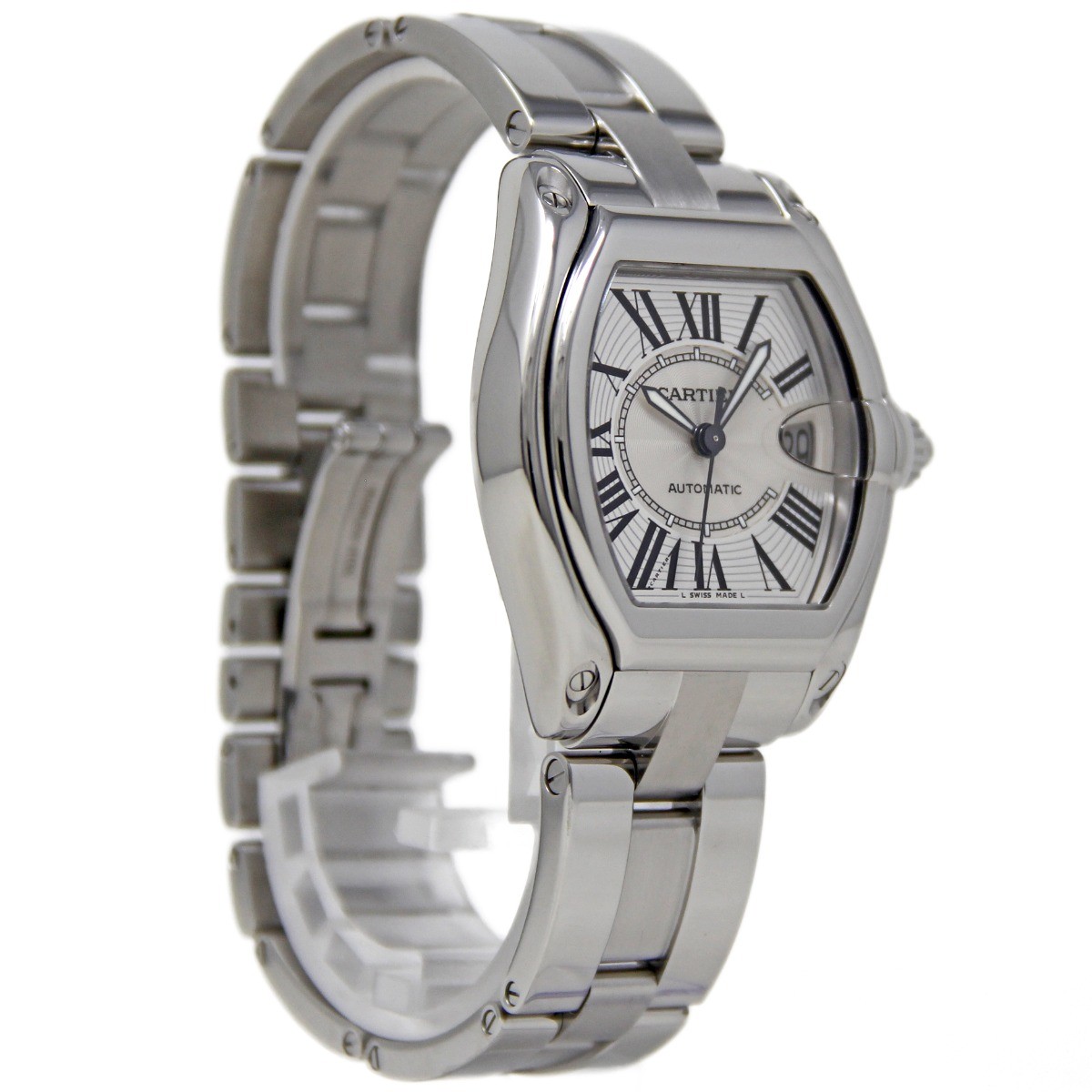 CARTIER Roadster LM W62025V3 Date Silver Dial Automatic Men's Watch_897087 Product Details Brand CARTIER Model Roadster LM Gender Men's Material Stainless Steel / Stainless Steel Dial color Silver Movement Automatic Ref Number W62025V3 Serial Number 230***CE Functions Date Accessories Inner BOX(used)、Operating Instructions、Leather belt Case size About 38mm (1.5inch) (not including the crown) Wrist size About 17.5cm (6.9 inch) Lugs width 19mm(0.7 inch) Keeping time -14 sec/day(measured value) ※Reference value State of the wound Glass No damage Case Light scratch, small wound Bezel Light scratch, small wound Belt/Bracelet a few scratch, small wound Hand few scratch Dial No damage Buckle a few scratch, small wound CL Number 897087 3FBB 250714 MA