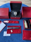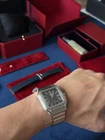 * Bought this directly in the Cartier store in Miami in Dec 2021 * Still under official Cartier International Warranty valid until Dec 2029 (because I registered it and they offered me up to 8yrs international warranty in the store) * I included photos from the official Cartier site as well as the latest/current photos. * It’s obviously used but this is stainless steel and it’s normal and it can always be re-polished by Cartoer to be good as new. Stainless steel is recommended to be polished upto 3 times. I have not re-polished it yet. * I will include all the Cartier official paperwork, receipt and warranty card as well as the Cartier boxes, pouches and even the Cartier cleaning kit * BONUS : I also still have the original Cartier leather band with stainless steel clasp (additional to the stainless steel Cartier bracelet) The Cartier Santos De Cartier Large 40mm Stainless Steel Blue Dial WSSA0030 is a luxury men's wristwatch featuring a square case with a silver bezel and Roman numerals on the blue dial. This Swiss-made timepiece is water-resistant up to 100 meters and has a mechanical automatic movement with 23 jewels. The watch comes with a stainless steel bracelet, original box and packaging, as well as a date indicator. With its elegant design and exceptional features, this Cartier Santos de Cartier watch is a top choice for those seeking a high-quality, stylish timepieces. Product Description: * Santos de Cartier watch * Large model * Mechanical movement with automatic winding 1847 Mc * Steel case * 7-sided crown with synthetic faceted blue spinel * Graduated blue dial * Polished steel sword-shaped hands with luminescent material * Sapphire crystal * Steel bracelet with SmartLink adjustment system * Second strap in blue alligator skin * With interchangeable folding steel buckle * Both are fitted with the QuickSwitch interchangeable system * Case width: 39.8 mm * Thickness: 9.38 mm * Water-resistant up to 10 bar (approx. 100 meters/330 feet) I ship fast, usually the same day as when it’s paid or latest thebfollowing day if paid at night. Love this watch but I’m selling to have available funds for something else. Happy bidding!