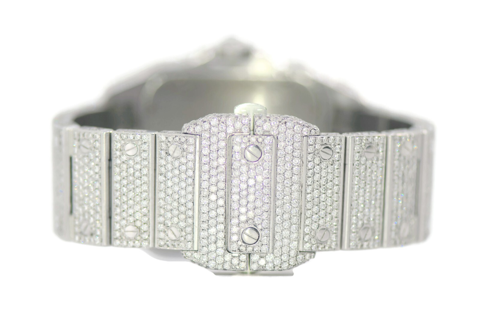 CARTIER SANTOS DIAMOND STAINLESS STEEL WATCH REF:W20073X8 CASE:40MM SKU:3-25 WRIST SIZE UP TO 6.5 INCHES AFTERMARKET DIAMONDS 20 CTW D/E VVS1 QUIALITY 100% AUTHENTIC WITH BOX