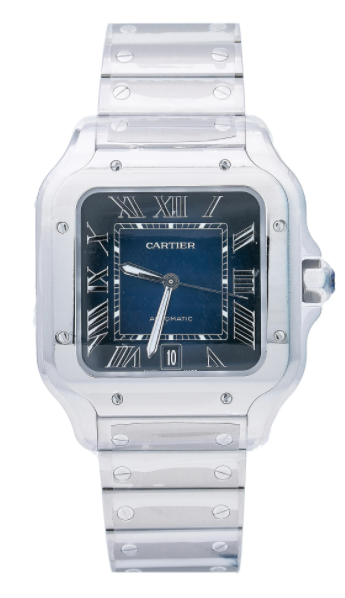 The Cartier Santos de Cartier WSSA0030 is pure elegance on the wrist. The striking blue dial with Roman numerals and date window adds sophistication, while the silver steel bracelet and bezel give it a timeless, versatile look. The automatic movement ensures precision, and the 100m water resistance makes it practical for daily wear. At 39.8mm, it’s the perfect size—bold yet refined. The Swiss craftsmanship shines through, and the original packaging adds to its premium appeal. A flawless blend of luxury and functionality, this watch is a true statement piece for any occasion.