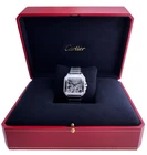 Cartier Santos Skeleton WHSA0015 Large Mens Watch Box & Papers TOP BRANDS Rolex Audemars Piguet Omega Patek Philippe Cartier Breitling All Cartier Santos Skeleton WHSA0015 Mens Watch. 40mm stainless steel case. Stainless steel fixed bezel. Skeleton dial with blue steel hands. Stainless steel bracelet with double locking fold over clasp. Will fit up to a 7-inch wrist. Sapphire crystal. Sapphire crystal case back. Caliber 9611 mechanical hand-winding movement power reserve 72 hours. This watch comes with original Box and Papers. This watch is backed by our two year warranty. Phigora Guarantee Two Years Warranty Free Shipping & Returns Specifications SKU C02242209X Model Santos Gender Men Watch Style Luxury Shape Square Case Material Stainless Steel Movement Mechanical Condition Mechanical Dial Color Skeleton-dial Band Material Stainless Steel Age Modern (2000-Present) Box/Papers Original Box & Papers Wrist size (IN) 7.00 Payment Shipping Returns Warranty Payment Option: Buyers can pay using PayPal Credit or Bill Me Later. Taxes: New York Residents are required to pay 8.875% Local Sales Tax. Questions: Feel free to contact us with any questions or concerns; customer service and satisfaction is very important to us. Shipping Terms: All items are shipped from our facility within 2 business days from the date payment is received, certain circumstances handling time will be longer in such cases you will be notified. Please be patient as this processing time is necessary for our quality control team. As these watches sit in our auction safe prior to being sold, this processing time allows us to re-examine the watch to make sure it is still in the same condition as described. It also allows us to do a final 24 to 48-hour timing to ensure accuracy. This allows us to correct any timing issues prior to shipping. All shipments usually ship with FedEx. All packages are insured to the full purchase price. Buyers can pay using PayPal Credit or Bill Me Later. Expedited Shipping: If buyers require the item to be shipped within 24 hours of purchase, please notify us immediately after payment is made. All packages are required to be signed by an adult! Most Countries charge custom duties and taxes on items being imported from the USA The Buyer pays ALL import duties, taxes, and fees. These charges are your responsibility. Packages must clear customs and this will take a few days. Most countries charge customs duties, taxes, and fees on items being imported from the USA. You are responsible to know your Country's importing laws and taxes. Import duties, taxes, and fees are NOT included in the item price or shipping charges. Please check with your country's customs office to determine what these additional costs will be prior to buying. Duties, taxes, and fees are normally collected by the delivering freight (shipping) company or when you pick the item up & do NOT confuse them for additional shipping charges. We declare all items as a purchase for the purchase price amount. We accept returns for any reason within 30 days of receiving the item. The purchase price, excluding the original shipping cost, will be refunded. The buyer is responsible for return shipping costs. This warranty applies to the movement of the watch only. Watch movements are warrantied to perform as described in the Phigora item description during the warranty period. This warranty does not include the battery, strap, links, clasp, case, crown, bezel, dial, hands, screws, crystal and/or diamonds. Damage to a watch due to accident, neglect or mistreatment is not covered by this warranty. Mistreatment includes modification of the watch through the addition or substitution of parts or accessories not provided by Phigora and will void this warranty. Also not included is the loss or theft of the watch or any damage done by loss or theft. Damage caused by fire, pressure or natural disaster is not covered. This warranty does not cover any water damages including crystal fogginess, movement damage, dial or bezel damage, seals, gaskets, liquid penetration, and any issues pertaining to water. This warranty replaces the original manufacturer’s warranty. WHO IS PHIGORA? Phigora is your complete source for certified pre-owned luxury watches. We are here to help you purchase, sell, trade, and repair your watch. Our mission at Phigora is to deliver and service pre-owned luxury watches while providing the highest caliber of customer care and watch education .