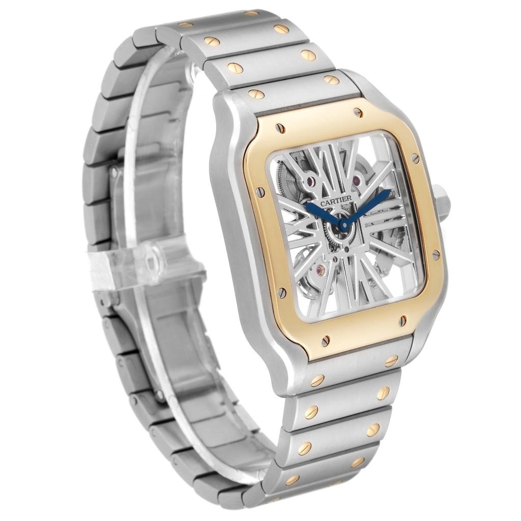 Cartier Skeleton Horloge Santos Steel Yellow Gold Watch WHSA0019 Box Card Cartier Skeleton Horloge Santos Steel Yellow Gold Watch WHSA0019 Box Card Click image to enlarge Description SwissWatchExpo (404) 814-1814 Model number WHSA0019 Stock number 53955 Case number 4109 288xxxxxx Retail Year Gender Mens Movement Manual winding winding movement. Calibre 9611 MC. Case Stainless steel case 40.0 X 40.0 mm . Stainless steel protected octagonal crown set with the faceted sapphire. Exhibition sapphire crystal caseback. Crystal Scratch resistant sapphire crystal. Dial Skeleton dial dial with Blued steel sword shape hands. Hours, minutes with skeletonised bridges forming Roman numerals. Bezel 18K yellow gold bezel punctuated with 8 signature screws. Bracelet Stainless steel and 18K yellow gold bracelet with “SmartLink” resizing system. Alligator leather strap, with double adjustable folding buckle. The two bracelets are equipped with the “QuickSwitch” interchangeability system. Fits 7.5" wrist. Condition Excellent condition Engravings None Box & papers Cartier box and card Authenticity 100% authentic Working condition Timed to precision on Witschi watch expert timing machine. Running strong and keeping the accurate time. Warranty The watch is covered by swiss watch expo one year warranty on anything but abuse Pictures All the photos are of the actual watch for sale Payment - We ONLY accept payments in United States Dollars (USD). - Payments must be made within 5 days of winning the auction. Shipping Shipping Methods All shipments are sent fully insured, using the following carrier methods: * Domestic - UPS. * International - No international shipping available Terms of Sale 18 month Limited Warranty Swiss Watch Expo is honored to have the opportunity to serve you. That's why we stand by all of our products with a full 18 month limited warranty. If an item we sell you should fail as a result of a manufacturer's defect at any time during the first year and a half , we will repair or replace the item at absolutely no cost to you. Not covered by warranty: - Regular wear-and-tear from normal use. - External damage to the product. Any damages resulting from wear to the watch case, crystal/glass, watch bracelet, watch bezel, straps, screws, crown/stem, finishes, clasps/buckles, or any other physical damage to the watch. - defects caused by outside force or improper use. Consequential and incidental damages. - the loss of precious, semi-precious stones from settings. - Outside modifications and third party repair attempts of any kind will void the warranty. - Any damage if used under conditions which exceed the watch manufacturer?s water resistance guidelines. - Watches that are labeled as water resistant feature a screw down crown. The crown must be screwed down properly at all times to keep the watch casing watertight. Water damage is not covered under the warranty unless it is proven defective by the SwissWatchExpo Repair and service Center. Our 100% Money-Back Guarantee At Swiss Watch Expo, we understand that your purchase is a significant investment - one that you will pass down to future generations. That's why we're happy to give you a no-questions-asked money-back guarantee with no restocking fees. If you're not satisfied with your purchase, just let us know within 7 days after the purchase and we'll honor your return and issue a full refund, no questions asked. *Deductible amount for domestic shipping costs: $50 About Us This fine piece is a part of collection offered by Swiss Watch Expo , members of the National Association of Watch and Clock Collectors (NAWCC) and the International Watch and Jewelry Guild (IWJG). We are third generation jewelers who have been selling fine Swiss timepieces and elegant jewelry since 1982. We've built our reputation on quality, service and integrity, and we treat each customer with the utmost respect. We stand by all of our products with a generous warranty and guarantee, so you always know that when you bid with Swiss Watch Expo , you can can bid with confidence! About Swiss Watch Expo Thank you for the opportunity to serve you and welcome the Swiss Watch Expo ebay auction, where we proudly offer our collection of top quality Swiss timepieces and fine jewelry. We are third generation European trained master watchmakers and jewelry makers dealing in Fine Swiss watches, elegant gemstones and precious jewelry for nearly 30 years. Why You Should Choose Swiss Watch Expo Unlike many online resellers, at Swiss Watch Expo , we have built our business the old fashioned way - through our brick and mortar store in Atlanta, Georgia, providing our customers the very best products at an incredible value, while giving them the exemplary service they deserve. Now, as we serve the Ebay community, our commitment to the same philosophies holds true. We invite you to browse through our customer feedback to read about the experience others have had with us through Ebay. What Makes Swiss Watch Expo Products Better Than The Competition Every watch we sell has been completely inspected to ensure years of optimal functionality. What's more, there are never any middlemen involved in the process. From the time we purchase a watch, our experianced master watchmakers handle all repairs and restoration, making the watch as good as new. We've invested thousands into our state-of-the-art repair facility in order to carry out our commitment to quality. As for jewelry, every item is of the highest quality, using only the finest precious metals and gemstones available. When You Choose Swiss Watch Expo , You Have Nothing To Lose When you purchase an item from Swiss Watch Expo on Ebay, you have complete peace of mind. That's because we offer you a generous money-back guarantee without any restocking fee, no questions asked. Our philosophy is simple: By being committed to quality, service and value, we have satisfied customers who come back to us time and time again. Our entire staff is comm