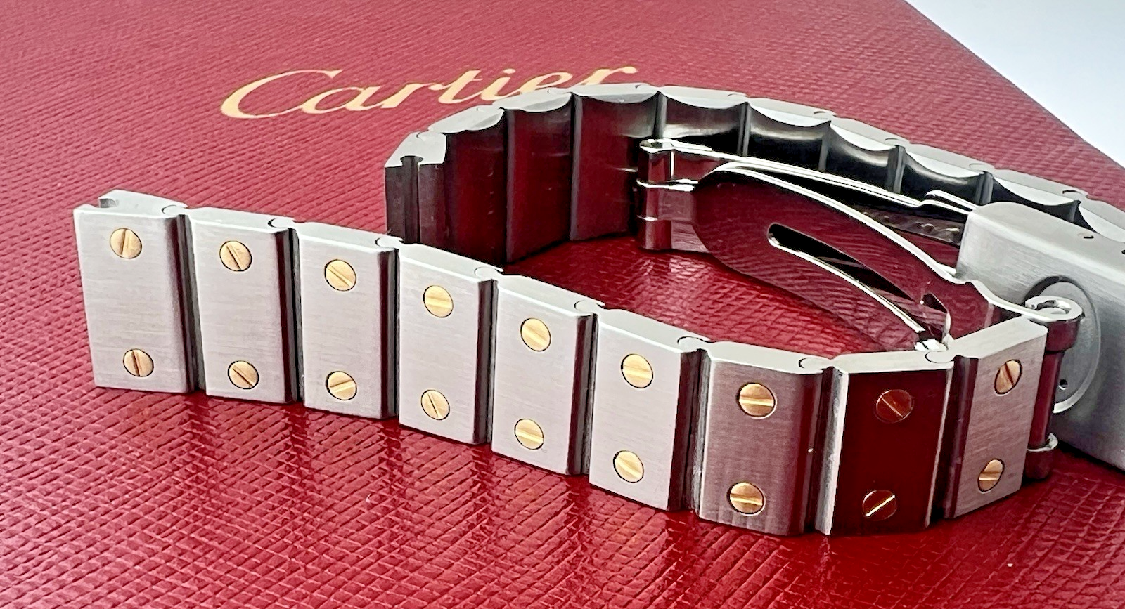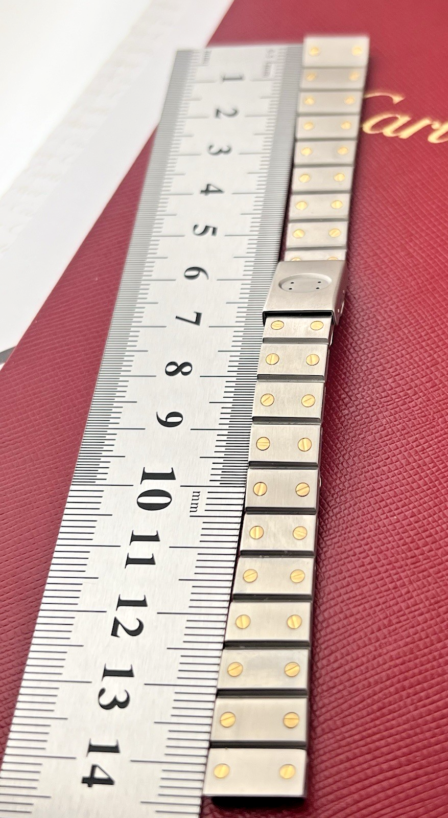 For Your Consideration UP FOR SALE IS A Cartier Watch BRACELET Santos WOMEN'S Ref On The Bracelet Is 276267 Pictures Showing Complete Measurements Of Lugs And Length 12mm Lugs And 5.7 Inches/14.5 cm 18K/ Stainless Steel 12mm LUGS Swiss Made PREOWNED IN EXCELLENT CONDITION Please Note The Bracelet Clasp Cartier Logo Fell Off During Refinishing Of The Bracelet And Is Missing And We Hope We can Source One Etc.. Please Consider This Listing/Auction That The Bracelet Is missing The Cartier Logo On The Clasp. Fully Signed And In Excellent Condition. We carry large inventory of watch links of various Swiss Brands PLEASE ENQUIRE WITH US ON ANY ACCESSORIES/WATCH PARTS ETC... 100% AUTHENTIC ORIGINAL SWISS MADE PLEASE NOTE WE DO NOT OFFER RETURNS ON ACCESSORIES PLEASE ASK ALL AND ANY QUESTIONS BEFORE MAKING YOUR PURCHASE LOCAL PICK UP WELCOME IN BEVERLY HILLS, CA Thank you G/b 26
