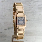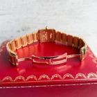 Basic Information Brand: Cartier Model: Tank Française Reference: W50002N2 Gender: Women Case Case Material: Yellow gold Diameter: 20 mm Water Resistance: 30 m ( 3 ATM ) Dial Color: White Dial Numbers: Roman Numerals Movement Movement: Quartz Functions: 12-Hour Dial, Swiss Made Bracelet Bracelet Material: Yellow gold Bracelet Color: Yellow gold Description Brand: Cartier Model: Tank Française Ref: W50002N2 Movement: Quartz Year: Approx. 1995 Case: Yellow gold Lunette: Yellow gold Dial: White Crystal: Sapphire Bracelet: Yellow gold Bracelet, 16 cm Circumference Clasp: Cartier folding clasp Crown: Original Cartier Crown Box: Cartier Watchbox Paper: Cartier Papers Working Condition: Very good Optical Condition: Very good Warranty: One-year warranty on used watches Scope of Delivery The watch shown in the photos will be delivered with a watch box, the invoice, and an in-house guarantee certificate. The watch box and original documents are only included if mentioned in the description and depicted in the photos. Authenticity The authenticity of the watches we offer is guaranteed with an in-house authenticity certificate. Shipping Shipping is conducted exclusively through an insured valuables shipping service provider, immediately after receipt of payment for the full invoice amount. Value Added Tax The final price is the highest bid because, for used watches, differential taxation applies according to § 25a UStG (differentially taxed). The sales tax is not separately itemized. This is a final price. Payment & Pickup All our items can also be picked up in person at the store for cash payment, by prior arrangement. Condition (see photos) Our watches are in very good and well-maintained condition (see photos). The photos are original images of the item for sale. Our watches are fully functional and have been tested for authenticity, functionality, and timekeeping. General Information For deliveries to non-EU countries, additional customs duties or taxes may apply once the purchased goods reach the destination country. These additional customs duties or taxes are the responsibility of the buyer. The seller has no influence over these fees and cannot predict the amount, as customs regulations vary significantly from country to country. We recommend that the buyer inquire about potential customs duties or local taxes at the customs office responsible for the destination country. All our used items are in good and well-maintained condition; however, signs of wear are understandably not excluded.