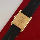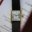 Our Perspective: Released in 1917, the Cartier Tank was inspired by the silhouette of WWI Renault tanks, translating rigid military form into one of the most elegant watch designs ever created. Its rectangular case, elongated brancards, and understated dial have made it a design icon for over a century. The Tank Louis Cartier, named after its creator, remains the purest expression of the original vision, maintaining the timeless proportions and classical aesthetic that defined the earliest models. This particular model, the ref. 78086, dates to the 1970s, a period that saw a creative resurgence for Cartier with the then-new Louis Cartier watch collection: a series of 12 iconic models, all presented in large and small versions (minus the baignoire). Crafted in yellow gold and powered by a manual-wind caliber 78-1 movement, this watch features the sought-after Mark 2 dial with a pointy “A”, no secret signature, and Swiss at 6 o'clock. Condition Report: Very Good vintage condition. Watch has been previously polished. Case shows signs of moderate use including scratches and indentations. Dial is in well-preserved original condition with minimal signs of wear and hard to see marks above 6 o'clock. Crystal shows minor scratches and wear. Replacement Must de Cartier black lizard strap shows moderate to heavy signs of wear. Its case retains a polished yet visible hallmark under crown and a seemingly unpolished caseback with personal engraving. Watch is currently running at +/- 0 s/d when tested in one position. Condition Grade: 8.25/ 10