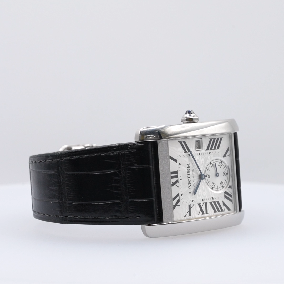 This Cartier Tank MC is pure elegance! The crisp white dial and sleek stainless steel case make it a timeless piece, while the black crocodile strap adds a touch of sophistication. It’s in fantastic condition, comes with original box and papers, and has been meticulously checked for authenticity and performance. The 12-month warranty gives extra confidence—absolutely worth it for such a stunning watch!