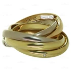 EXHIBITION NOTICE: We will be at the Original Miami Beach Antique Show from January 9th to January 13th. You can find us at the South Beach Convention Center Booth 1612. While we are at the show, please contact us prior to bidding to ensure availability. Last day of shipping is January 2nd. Add our eBay Store to Favorites We Buy & Exchange Fine Estate & Brand Name. Contact us for details. Please note that the eBay Authenticity program can take up to two weeks to process your purchase. Contact us for express and holiday orders, we can revise the listing to ship the merchandise directly to you without delays. If you are an international customer, please contact us prior to bidding to discuss payment and shipping options. For all international and express orders, actual shipping fees will be billed separately. CARTIER Trinity 18k Multitone Gold 6 Band Ring Certificate Stones Diamond Estimated Diamond Weight 0.30 carats Estimated Diamond Color D-E-F Estimated Diamond Clarity VVS1-VVS2 Metal 18k Multi-Tone Gold Total Weight 13.20 grams Reference # MTSJ13451 Description This fabulous Cartier ring from the iconic Trinity collection features 6 interconnected bands crafted in 18k yellow, white, and rose gold and set with 30 brilliant-cut round D-E-F VVS1-VVS2 diamonds weighing an estimated 0.30 carats. Made in France circa 2000s. Click here to see video! Condition Excellent condition. Comes with original papers and unbranded gift box. Call us for any questions about this item. Dimensions 0.38" (10mm) width Ring Size 6.75 - EU 54. Non-resizable. Period 2000s Origin France Authenticity We guarantee 100% authenticity on every piece. For insurance purposes, we can provide an appraisal upon request. An independent appraisal will cost an additional $50. Any condition statement, total diamond or color stones weight is given as a courtesy to a client and is an opinion that should not be treated as a statement of fact. Our Company shall have no responsibility for any error or omission. Please contact us to request further information or additional images that may be available. Payment New York State residents pay 8.875% in sales tax. Call us for additional payment options, including layaway plans. Payment must be completed within 36 hours of sale, otherwise the item is relisted and a case is opened. Shipping We offer FREE fully-insured USPS Priority Mail shipping within continental United States. Please note that all shipments require a signature confirmation and we will not ship jewelry to PO Boxes. International Shipping We can ship almost anywhere in the world! Please contact us prior to bidding for accurate shipping costs. Additional shipping costs may be billed separately. We cannot ship jewelry to certain countries due to import restrictions, so please check your country's import regulations on precious stones and metals. International taxes and custom duties are solely the customer's responsibility and our merchandise will be fully insured for buyer and seller protection. Feedback If you have 0 or negative feedback, please contact us before placing your bid. Any bid without completion of payment will result in negative feedback. Feel free to contact us with any questions. Returns Actual payment processing fees and shipping fees will be deducted from all refunds. Please contact us prior to returning your purchase. Returns will be accepted within 14 days and refunds will be processed within 48 business hours. The customer is responsible for return shipping expenses and the return must fully insured. Merchandise must be returned in original unworn condition with the original protective tag. Please note that all international sales will be final and no returns will be accepted.
