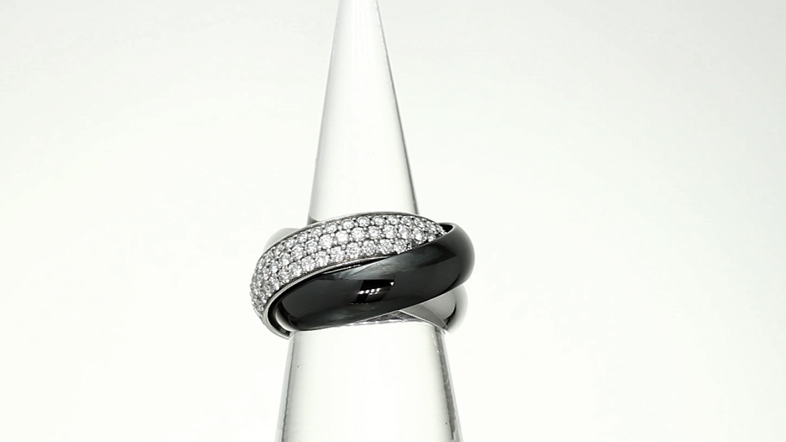 EXHIBITION NOTICE: We will be at the Original Miami Beach Antique Show from January 9th to January 13th. You can find us at the South Beach Convention Center Booth 1612. While we are at the show, please contact us prior to bidding to ensure availability. Last day of shipping is January 2nd. Add our eBay Store to Favorites We Buy & Exchange Fine Estate & Brand Name. Contact us for details. Please note that the eBay Authenticity program can take up to two weeks to process your purchase. Contact us for express and holiday orders, we can revise the listing to ship the merchandise directly to you without delays. If you are an international customer, please contact us prior to bidding to discuss payment and shipping options. For all international and express orders, actual shipping fees will be billed separately. CARTIER Trinity Diamond Platinum 18k White Gold Ceramic Band Ring Stones Diamond Estimated Diamond Weight 1.55 carats Estimated Diamond Color D-F Estimated Diamond Clarity VVS1-VVS2 Metal 18k White Gold & Platinum Total Weight 15.60 grams Reference # MTSJ13036 Description This magnificent ring from the Trinity de Cartier collection features 3 interconnected bands, crafted in 950 platinum, 18k white gold and black ceramic. The white band is pave-set with approximately 130 round brilliant-cut D-F VVS1-VVS2 diamonds of an estimated 1.55 carats. Made in France circa 2000s. Click here to see video! Condition Excellent condition. Comes in an unbranded gift box. Call us for any questions about this item. Ring Size 5 - EU 49. Non-resizable. Period 2010s Origin France Authenticity We guarantee 100% authenticity on every piece. For insurance purposes, we can provide an appraisal upon request. An independent appraisal will cost an additional $50. Any condition statement, total diamond or color stones weight is given as a courtesy to a client and is an opinion that should not be treated as a statement of fact. Our Company shall have no responsibility for any error or omission. Please contact us to request further information or additional images that may be available. Payment New York State residents pay 8.875% in sales tax. Call us for additional payment options, including layaway plans. Payment must be completed within 36 hours of sale, otherwise the item is relisted and a case is opened. Shipping We offer FREE fully-insured USPS Priority Mail Express shipping within continental United States. Please note that all shipments require a signature confirmation and we will not ship jewelry to PO Boxes. International Shipping We can ship almost anywhere in the world! Please contact us prior to bidding for accurate shipping costs. Additional shipping costs may be billed separately. We cannot ship jewelry to certain countries due to import restrictions, so please check your country's import regulations on precious stones and metals. International taxes and custom duties are solely the customer's responsibility and our merchandise will be fully insured for buyer and seller protection. Feedback If you have 0 or negative feedback, please contact us before placing your bid. Any bid without completion of payment will result in negative feedback. Feel free to contact us with any questions. Returns Actual payment processing fees and shipping fees will be deducted from all refunds. Please contact us prior to returning your purchase. Returns will be accepted within 14 days and refunds will be processed within 48 business hours. The customer is responsible for return shipping expenses and the return must fully insured. Merchandise must be returned in original unworn condition with the original protective tag. Please note that all international sales will be final and no returns will be accepted.