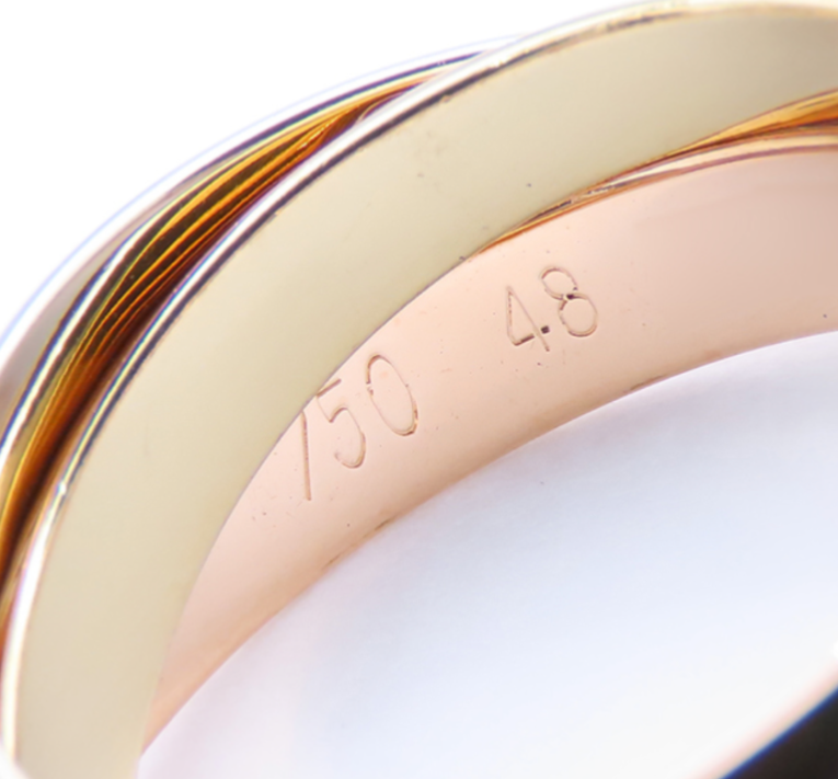 CARTIER Trinity Ring MM #48 18K Yellow/Pink/White Gold – Exquisite 3-Band Design Description About This Items Add timeless elegance to your jewelry collection with this authentic Cartier Trinity Ring. This classic MM version features three interlocking bands in 18K yellow, pink, and white gold, symbolizing love, fidelity, and friendship. A refined and iconic piece from Cartier’s renowned Trinity collection. This item has been professionally authenticated and is guaranteed 100% authentic. Brand: Cartier Model: Trinity Ring MM Classic Material: 18K Yellow Gold, 18K Pink Gold, 18K White Gold Color: Tri-color Gold Ring Size: JP 8 / EU 48 / US4.5 Band Width: Approx. 3.3mm each Total Weight: Approx. 6.1g Condition Unused. Professionally polished to remove fine scratches, resulting in an exceptional finish. Included Items No accessories included (original box not included) ■ ■ ■ Authenticity Guarantee All items listed are guaranteed to be 100% authentic. In the unlikely event that an item turns out to be counterfeit or significantly different from what was described, we offer a full refund of the purchase price within 30 days of delivery. Please shop with confidence. ■ ■ ■ Shipping This item will be shipped from Japan. Please note that FedEx does not deliver to P.O. Box addresses. If the shipping address is a P.O. Box, your order will be cancelled. Kindly verify your address before making a purchase. Please note that FedEx does not deliver to P.O. Box addresses. If the shipping address is a P.O. Box, your order will be cancelled. Kindly verify your address before making a purchase. We always send the item with a tracking number. So please place an order without any concern on delivery. You can always track the delivery status. Shipping is only available to the address registered in eBay. If you want us to send another address, please change your address on eBay and then place an order. Shipping is available from Monday to Friday. Weekends are not available because freight (shipping) companies are closed. We do not mark merchandise values below value or mark items as “gifts” – Japan, US and International government regulations prohibit such behavior. About Importer's Obligation Import duties, taxes, and charges are not included in the item price or shipping cost. These charges are the buyer's responsibility. Please check with your country's customs office to determine what these additional costs will be prior to bidding or buying. For U.S. buyers, items valued over USD 800 may be subject to customs duties or taxes under U.S. import laws. Thank you for your understanding.