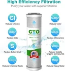 【MATERIAL PREMIUM Y CONFIABLE】Este reemplazo de filtro de agua para toda la casa de 5 micrones está certificado por NSF, fabricado con carbón activado de cáscara de coco de alta pureza y envuelto con tela densa de PP de grado alimenticio que no se desprende, evitando que las partículas de carbón entren en el agua filtrada. Sin olor, sin fugas ni contaminación secundaria, por lo que le brinda una experiencia de filtrado de agua segura, saludable y agradable. 【POR QUÉ 5 MICRONES】El filtro de agua de carbón de 5 micrones es el más popular en la actualidad. En comparación con los filtros de mayor clasificación de micrones, alcanza un equilibrio de eliminación suficiente de cloro residual y alto flujo de agua. Es un 30% más eficiente que la mayoría de los filtros de agua. ※ El elemento de filtro CTO no puede filtrar el agua de pozo solo, úselo junto con el elemento de filtro MPP. 【LARGA VIDA ÚTIL】El filtro de carbón puede capturar partículas de 5 micrones o más grandes del agua municipal o de pozo, tiene un gran flujo de agua y no impide demasiado la presión del agua. La vida útil del filtro es de aproximadamente 3 a 6 meses o 15 000 galones, según el uso y la calidad del agua local. Recomendamos reemplazarlo cada 3 a 6 meses para un rendimiento óptimo. 【ESENCIAL PARA EL HOGAR】Este cartucho de filtro de agua es ideal para suministrar agua a toda la casa y también protege los electrodomésticos como el dispensador de agua, la cafetera, el lavavajillas, la lavadora y las tuberías de agua, los accesorios de ducha y los grifos de la cocina de los sedimentos y las incrustaciones. 【FÁCIL INSTALACIÓN】Este filtro de encimera es fácil de instalar por usted mismo, solo desenrosque el recipiente y coloque el filtro de agua y luego vuelva a enroscarlo. Este filtro de agua está envuelto en tela blanca no tejida, por lo que su uso es claro a simple vista. Es conveniente para usted reemplazar el filtro a tiempo y disfrutar de agua saludable. 【TAMAÑO UNIVERSAL】 Este filtro de agua de 5 micrones 10x2.5 se adapta a la mayoría de los sistemas de filtración por ósmosis inversa estándar debajo del fregadero, unidades de filtración de agua de encimera, filtración de agua de RV y sistemas de filtración de toda la casa con carcasa estándar de 10 pulgadas. Compatible con los modelos de filtro de: GE, FXUSC, FXWTC, FX12P, Dupont, WFPFC8002, WFPFC5002, WFPFC3002, Culligan, CW-F, CW-MF, SCWH-5, etc.