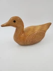 Carved Duck Decor Resin Tan Glass-Eyed 12" Good pre-owned carved resin duck. Use marks noted. Felt furniture protectors. See photos for condition details.