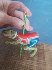 The Kurt Adler ornament is a vintage hand-painted wooden and resin carousel ornament featuring a frog design from The Smithsonian Institution collection. It is a unique addition to any Christmas ornament collection. Very minor wear on paint wear from age please see pictures for part of description and measurements any questions please ask thank you