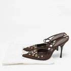 Our eBay Store About Us Contact Us Add to Favorite Sellers Casadei Dark Brown Nubuck Leather Pointed Toe Ankle Wrap Sandals Size 38 Gorgeous details and an understated elegance crowns these Casadei sandals. The dark brown nubuck leather construction brings to life a pointed-toe silhouette that is enhanced by chic motifs on vamps and buckled ankle wraps. Set on 11cm heels, these beauties will offer you a comfortable walk with their leather-lined insoles. They'll match well with a lot of outfits! Product Details Brand Casadei Color Brown Includes Original Dustbag Outsole Length 26 cm Outsole Width 8 cm Size US 8 (EU 38/UK 5) Certified by The Luxury Closet This item has gone through a detailed authentication process overseen by our experts. We offer a lifetime guarantee of authenticity on all our items. How We Check The in-house team of experts at The Luxury Closet is highly trained to verify the authenticity and the condition of the luxury products. They ensure that only 100% authentic items are put on sale.The evaluation process is unique with its own mix of assessment criteria and differs according to the category. Each item is evaluated based on the following combination of hallmarks, hardware, stitching, symmetry, material, craftsmanship, stamping, codes, hologram stickers, and packaging. Our authenticators also check if the items have been modified or amended (e.g., aftermarket diamonds, replaced batteries, repaired bags, etc.) International Buyers Import duties, taxes and charges are not included in the item price. These charges are the buyers responsibility. Please check with your country’s customs office to determine what these additional cost will be prior to buying.