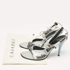 Our eBay Store About Us Contact Us Add to Favorite Sellers Casadei Grey Satin Floral Ankle Tie Up Sandals Size 38 These sandals will frame your feet in an elegant manner. Crafted from quality materials, they display a classy design and comfortable insoles. Product Details Brand Casadei Color Grey Includes Original Dustbag Outsole Length 23 cm Outsole Width 8 cm Size US 8 (EU 38/UK 5) Certified by The Luxury Closet This item has gone through a detailed authentication process overseen by our experts. We offer a lifetime guarantee of authenticity on all our items. How We Check The in-house team of experts at The Luxury Closet is highly trained to verify the authenticity and the condition of the luxury products. They ensure that only 100% authentic items are put on sale.The evaluation process is unique with its own mix of assessment criteria and differs according to the category. Each item is evaluated based on the following combination of hallmarks, hardware, stitching, symmetry, material, craftsmanship, stamping, codes, hologram stickers, and packaging. Our authenticators also check if the items have been modified or amended (e.g., aftermarket diamonds, replaced batteries, repaired bags, etc.) International Buyers Import duties, taxes and charges are not included in the item price. These charges are the buyers responsibility. Please check with your country’s customs office to determine what these additional cost will be prior to buying.