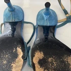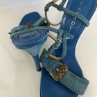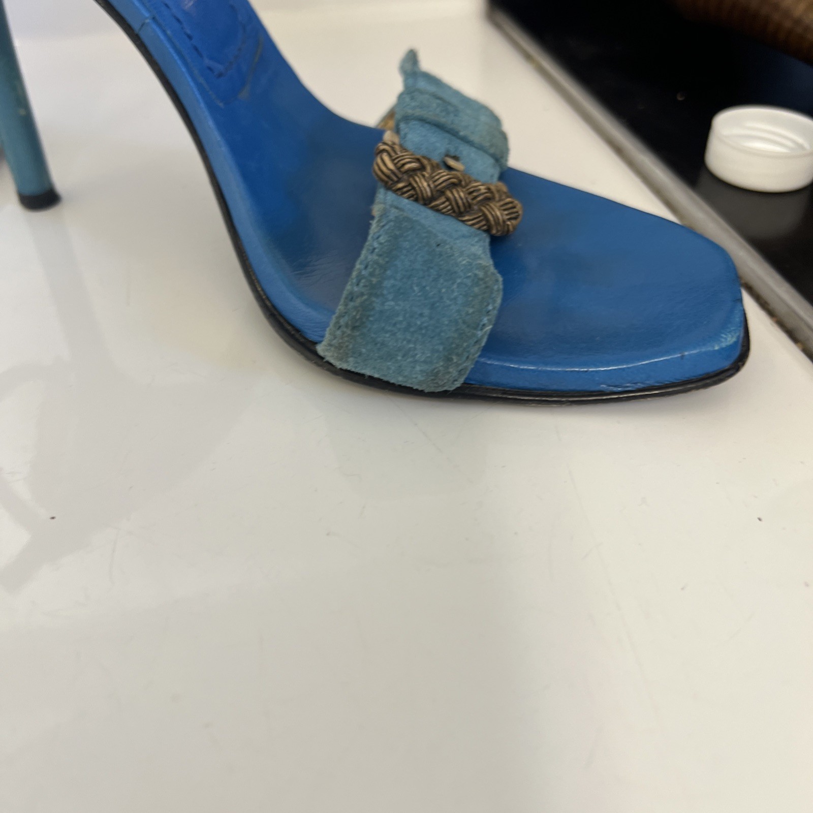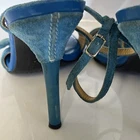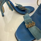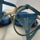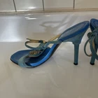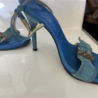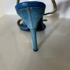 The Casadei Italian Blue Suede Strap Sandel Pump is a stylish and elegant heel designed for women. Made in Italy, these pumps feature a stiletto heel and a luxurious leather lining. The blue suede upper adds a pop of color to the shoe, making them perfect for the summer and spring seasons. With a strap design and a comfortable leather insole, these pumps are both fashionable and practical for any occasion. The Casadei brand is known for its quality craftsmanship and attention to detail, making these sandals a high-end choice for any woman's wardrobe. These aren’t in mint condition but still beautiful on the foot. Be a great way to own a true pair of Designer shoes