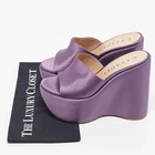 Our eBay Store About Us Contact Us Add to Favorite Sellers Casadei Light Purple Satin Platform Wedge Sandals Size 395 Make a soft statement with these Casadei platform wedges in dreamy light purple satin. Featuring a wide strap on the upper and a sculpted wedge heel, they offer standout style and graceful elevation for garden parties, events, or summer evenings. Product Details Brand Casadei Color Purple Includes The Luxury Closet Packaging Outsole Length 25 cm Outsole Width 9 cm Size 39.5 Certified by The Luxury Closet This item has gone through a detailed authentication process overseen by our experts. We offer a lifetime guarantee of authenticity on all our items. How We Check The in-house team of experts at The Luxury Closet is highly trained to verify the authenticity and the condition of the luxury products. They ensure that only 100% authentic items are put on sale.The evaluation process is unique with its own mix of assessment criteria and differs according to the category. Each item is evaluated based on the following combination of hallmarks, hardware, stitching, symmetry, material, craftsmanship, stamping, codes, hologram stickers, and packaging. Our authenticators also check if the items have been modified or amended (e.g., aftermarket diamonds, replaced batteries, repaired bags, etc.) International Buyers Import duties, taxes and charges are not included in the item price. These charges are the buyers responsibility. Please check with your country’s customs office to determine what these additional cost will be prior to buying.