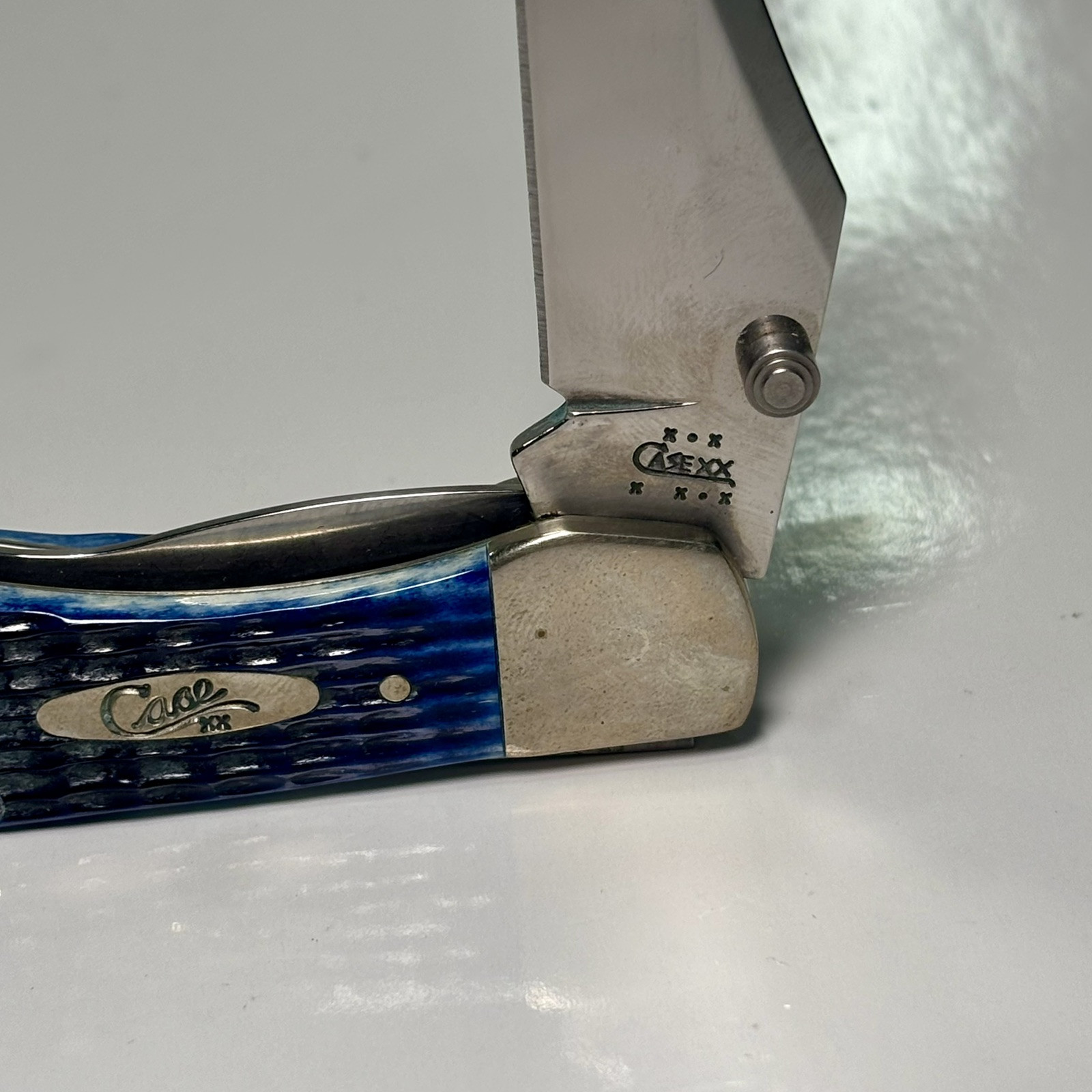Brand: Case Blade Material: Stainless Steel Blade Type: Clip Point Type: Pocketknife Lock Type: Lockback Original/Reproduction: Original Model: R1265LC Country/Region of Manufacture: United States Opening Mechanism: Manual Handle Material: Bone Blade Range: 2.75 Color: Blue Number of Blades: 1 Blade Edge: Plain
