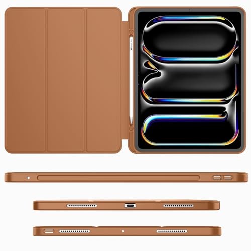 Case for iPad Pro 13 Inch M5/M4 2024/2025 with Kickstand & Pencil Holder Compatible with iPad Pro 13 inch (M5) 2025 (A3360, A3361, A3362) and iPad Pro 13 inch (M4) 2024 (A2925, A2926, A3007); check model number on the device bottom. Supports Pencil Pro and Pencil (USB-C) with a magnetic charging side groove and secure magnetic clasp. Features auto wake/sleep function with a powerful magnet for easy on/off and secure closure. Constructed with PU exterior, microfiber lining, and soft TPU back for full protection against shocks, drops, and scratches. Offers dual standing positions for adjustable viewing angles.