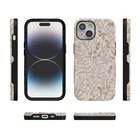Product Page Casely iPhone 15 Beige Garden Floral Case Military Grade Protection Slim Fit Description: The Beige Garden Neutral Floral Case brings a sophisticated, earthy charm to your iPhone, offering a fresh take on our popular Sage Garden Green Floral Case. This recolored version features intricate floral detailing in a soft beige palette, making it ideal for those who prefer a minimalist, natural look. Exclusively available for iPhone, this case combines style and practicality for everyday use. Crafted with premium materials, the Beige Garden case provides your iPhone with excellent protection while maintaining a slim, sleek profile. The delicate, neutral floral design complements any style, whether you're dressing up or keeping it casual. Its lightweight build ensures comfortable handling while keeping your device safe from daily wear and tear. Perfect for those who love understated elegance, the Beige Garden case offers a blend of beauty and functionality. Embrace a timeless, nature-inspired look that pairs effortlessly with any outfit, making this case a versatile and stylish choice for your iPhone. Features: Compatibility: Meet the Bold Collection - Not just a pretty cover for your phone, the Bold Collection Case from Casely is a super-strong Military-Grade-tested protective case, offering up to 8-feet of drop protection. Unique Features: Slip Resistant Side Grips. Stop drops in their tracks. Textured side grips help your phone firmly in your hand. Lightweight for Those on the Go: Don't carry a dumbbell around in your pocket. Ultra sleek, ultra slim. 3mm raised front lip protection. Weight: 1 Ounce. Protection: Shock absorbing air pocket technology cushions your phone from drops of up to 8 feet. Camera Protection: 1.5 mm raised lip keeps your camera safe from contact. Snap Crystal-clear pics every time. Charge Wirelessly: Go wireless. All Bold cases are wireless charging compatible. Designed in USA: Casely is one of very few case companies that designs our cases in the USA; All of our Phone Cases are designed in our Brooklyn, New York Headquarters Our Philosophy: We build protection for your Boldest behavior. #LiveBold. Casely's products are made with love and hand inspected from corner to corner to ensure high-quality phone cases you can count on. All cases come with a 1-year product warranty.