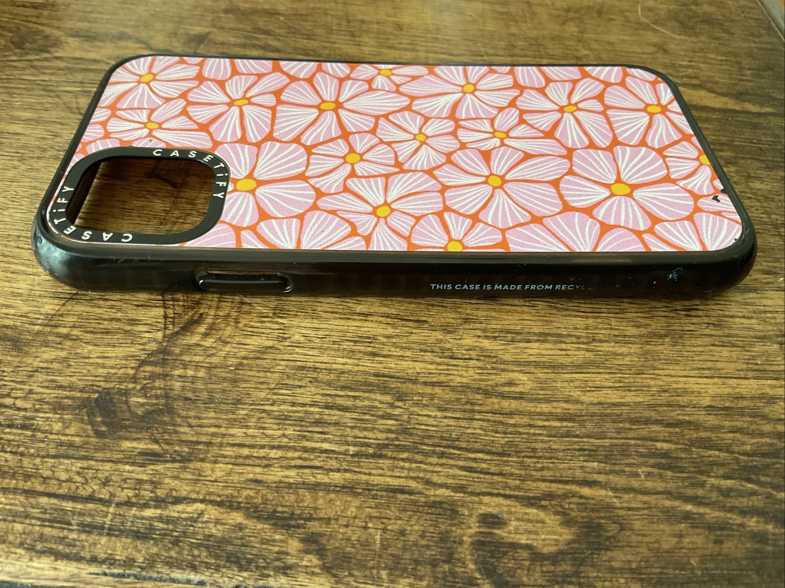 The Casetify iPhone 11 Impact Case in Orange & Pink Floral is a stylish and functional accessory for your device. Designed specifically for the iPhone 11, this shockproof case features a lightweight construction and accessible controls, making it both practical and durable. The vibrant pink floral design adds a touch of personality to your phone while providing the necessary protection against scratches and impacts. Ideal for those looking for both style and safety in their phone case. Has a small scratch on floral design, otherwise case is in great condition.