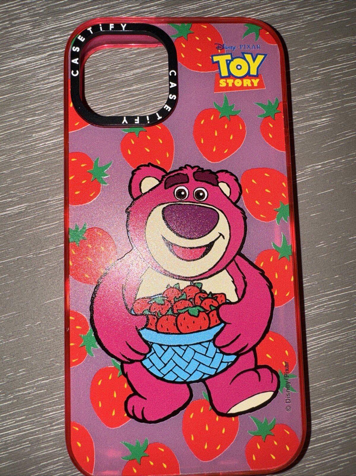 This Casetify Toy Story Lotso case is absolutely adorable! The pink and red design is vibrant and fun, making my iPhone 13 stand out. It feels super durable and protective while still being slim enough to fit in my pocket. Even though it’s out of the box, it looks brand new—no scratches or marks. The grip is great, and the print hasn’t faded at all. Perfect for Disney fans who want both style and protection!