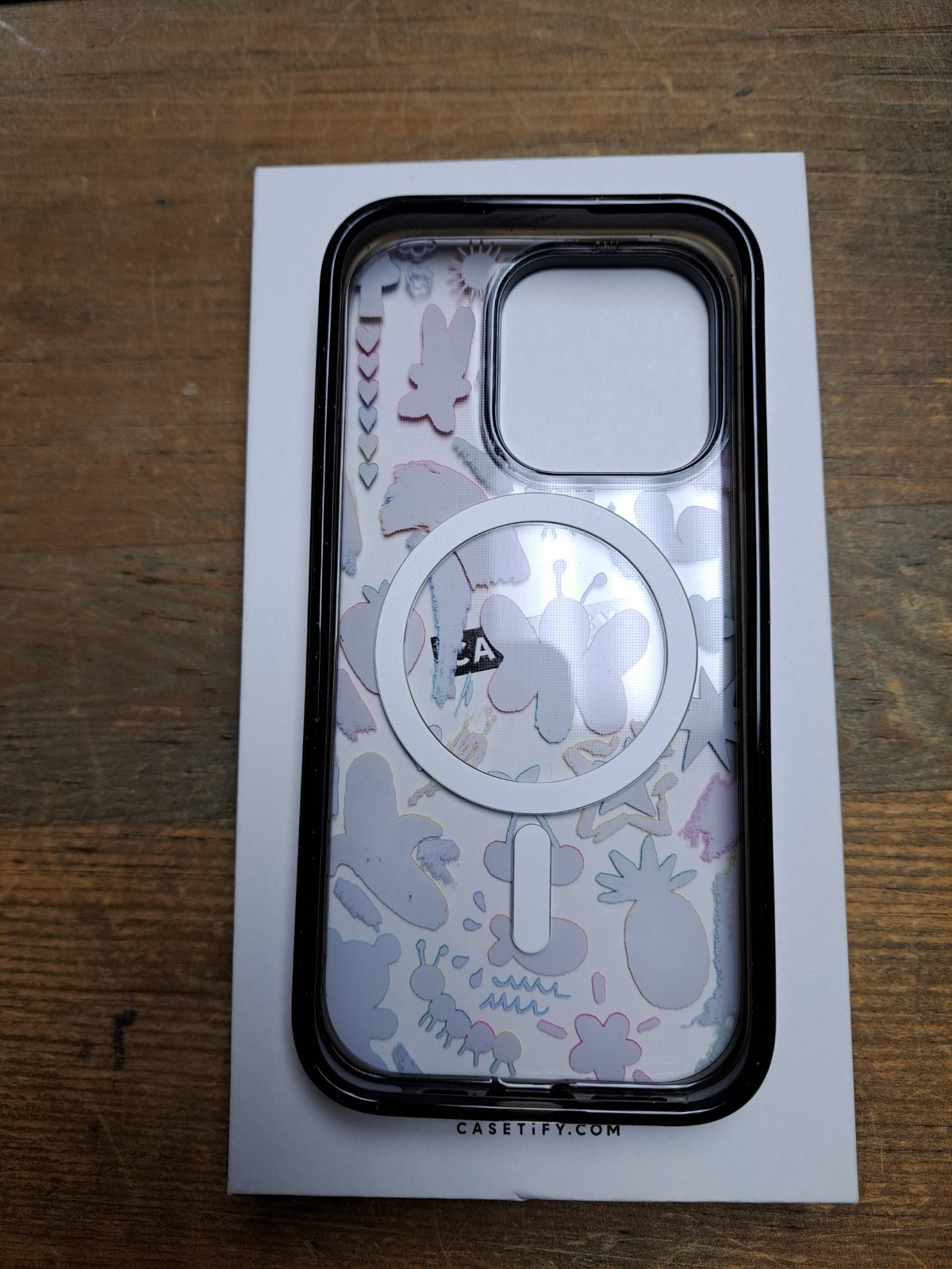 CASETiFY Impact iPhone 15 Pro Case [4X Military Grade Drop Tested / 8.2ft Drop Protection/Compatible with Magsafe] - Cute Prints - Good Vibes - Clear Black Compatible with iPhone 15 Pro Only (6.1" Screen Size) 8.2 ft. drop protection (4x MIL-STD-810G) EcoShock material Side sockets for easy charm attachment Wireless charging and MagSafe compatible