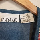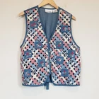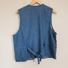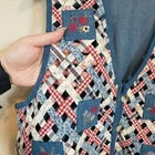 Casey & Max Vintage Granny Cottage Floral Patchwork Lattice Front Vest Casey and Max vintage denim and gingham patchwork lattice grandma vest with buttons and tie waist. Flowery denim vest with floral embroidery patches. The fabric is a mix of denim and cotton gingham. Vest can be cinched with a tie at the back. 100% cotton Size L Large Approximate Measurements: pit to pit -21" across length - 23" casual everyday vintage fashion vest cottagecore grannnycore floral 90s school teacher vibe Excellent pre-owned condition, no rips, tears or stains. Smoke free, dog friendly home. casual everyday vintage fashion vest cottagecore grannnycore floral 90s school teacher vibe