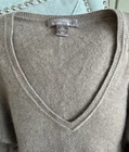 Cashmere by Charter Club 2 Ply 100% Cashmere Sweater in Taupe Light Brown in Size Large. The timeless silhouette of this cashmere sweater is simple and versatile. Imported created for Macys V-neck 2-ply yarn for durability and to help reduce pilling. Taupe light brown color Fibers originating from Kashmir goats. Dry Clean Sweater is in beautiful pre-loved condition with no flaws or defects. Extremely soft and lightweight. Measurements are approximately 19 1/2 inches from side to side lying flat and 24 1/2 inches in length. Please see all photos for close-ups and measurement details All my items come from a smoke-free home I am a seller with a five star rating and speedy same-day shipping Stylish trendy ISO cashmere knit feminine purple blue comty sott cozy warm tall winter elegant designer luxury classic chic minimalist, staple preppy versatile modern colorful career work plush, professional, polished mature