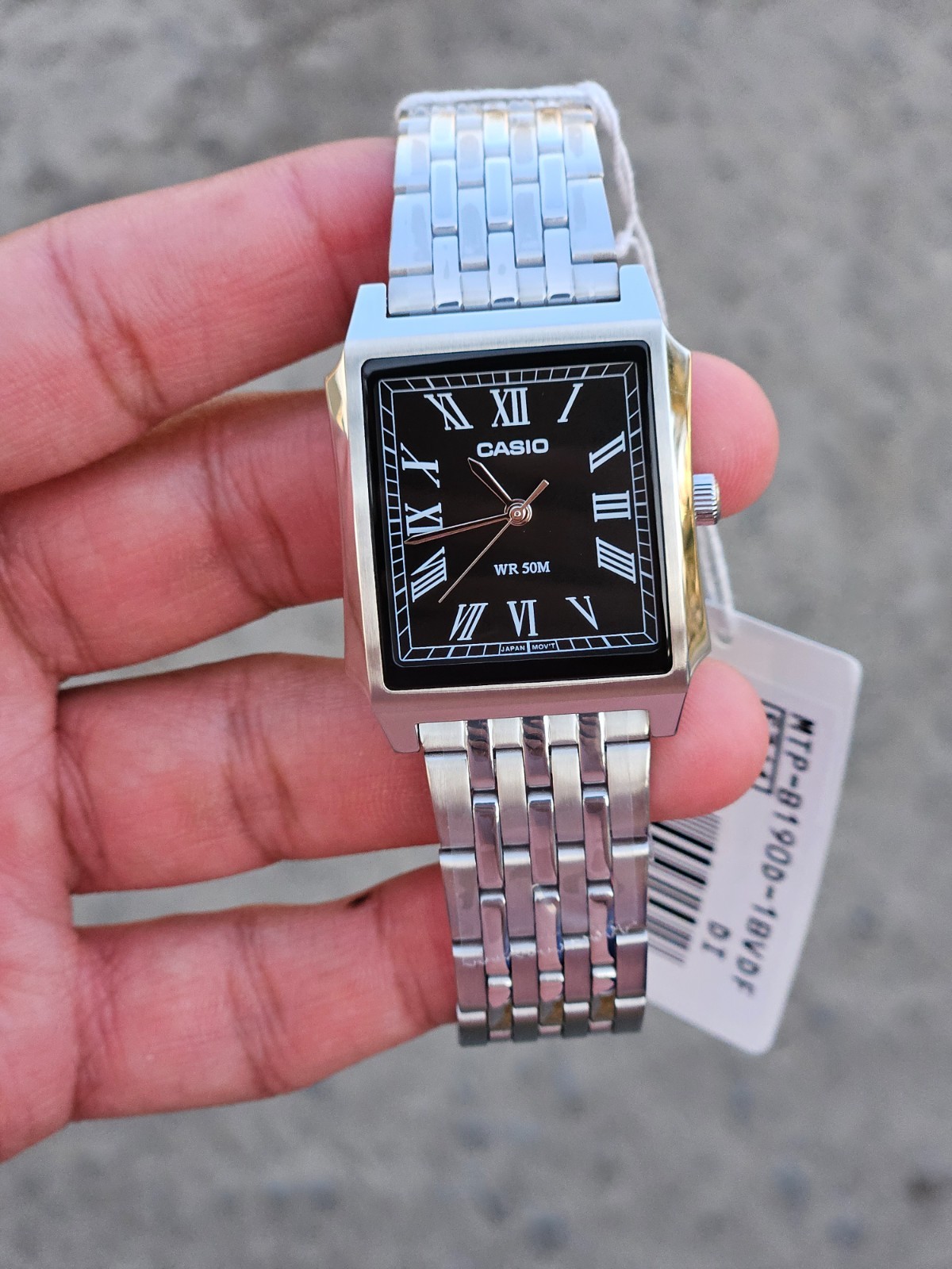 ✨ 100% Original Casio Watch – Brand New with Tag Model: Casio MTP-B190D-1B Design: Elegant Square Case with Roman Numerals Color: Black Dial / Silver Stainless Steel Band Water Resistance: 50M (Suitable for daily use) Movement: Japan Quartz (Accurate & Reliable) Gender: Unisex – Perfect for Men or Women Style: Classic / Formal / Business / Casual --- ✅ FEATURES: ✔ Stainless Steel Bracelet – Premium Look ✔ Roman Index Dial – Luxury Vintage Style ✔ Scratch Resistant Mineral Glass ✔ Lightweight & Comfortable ✔ Secure Fold Clasp ✔ Japan Movement --- ✅ CONDITION: ✔ Brand New ✔ Unused ✔ Comes with Tag ✔ Carefully Packed for Safe Shipping --- ✅ PERFECT FOR: 🎁 Gift (Birthday, Anniversary, Father’s Day) 🏢 Office & Business Wear 👌 Daily Elegant Style --- ✅ SHIPPING & SERVICE: ✅ Fast & Safe International Shipping ✅ Tracking Number Provided ✅ Trusted Seller – Buy with Confidence! ---