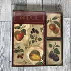 This vintage Caspari playing card deck and score pad set is a must-have for any card game enthusiast. The deck features a beautiful design inspired by The Golden Fruit theme, while the score pad provides a convenient and stylish way to keep track of your progress. Crafted with high-quality materials, this vintage deck is perfect for collectors and players alike. Whether you're looking to add to your collection or just starting out, this Caspari playing card deck and score pad set is sure to impress. Conditions: The item is listed as used because the main box is not sealed. However, the decks of cards are new and sealed and the score pad has never been used. Please look carefully at all pictures and item description before making your purchase. This item is sold as is, item in photos is the exact item you are purchasing. Comes from a smoke-free and pet-free home. Always ship fast! Offers Welcome! Check my other listings for more great deals! Thank you for stopping by and happy shopping!