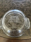Add a touch of vintage charm to your kitchen with this beautiful clear glass casserole dish. Crafted in the United States, this round bowl has a capacity of 20 oz and stands at 2.5 inches tall. The non-stick surface makes cooking and cleaning a breeze, while the durable glass material ensures long-lasting use. This original piece is perfect for any collector or home chef, and its classic design will never go out of style. Use it to bake your favorite casseroles or serve your guests in style.