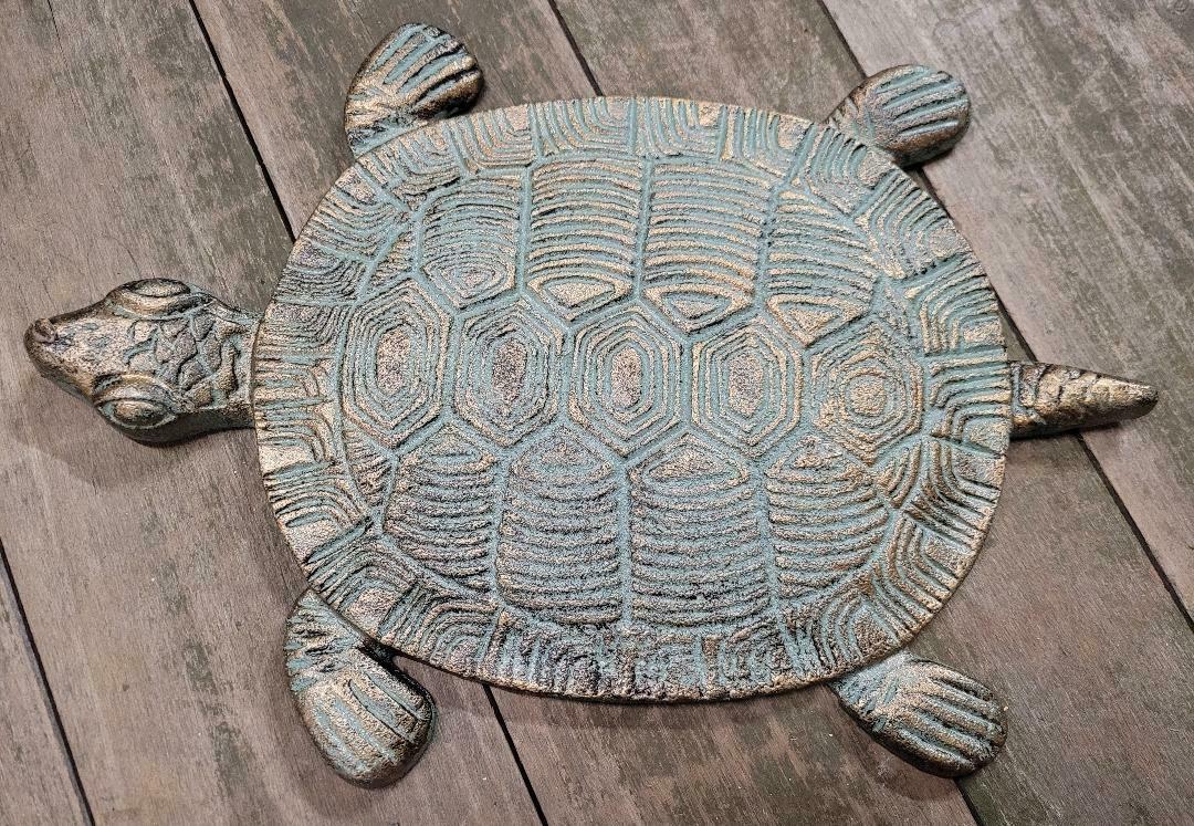 Here's a great cast iron stepping stone. Made just like the ones of the past. These have the same look of the antiques, but at a much lower price! Measure approx. 13" nose to tail, 9" wide side to side, 1/4" thick and over 3 LBS Great item for re-sale or for those restoration projects. This item was manufactured to look antique, expect some built in imperfections. Satisfaction Guaranteed