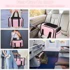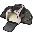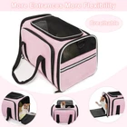 EXPANDABLE SOFT-SIDE CARRIER: Please measure pets before purchasing. pet carrier normal size is 18"Lx 11"Wx 11"H, expandable size is 18" Lx 29.8"W x 11"H by expanding the 2 mesh windows. Fits pet up to 18”L*10”W*10”H, max load of 15lbs (The dogs can not exceed 12 pounds). Please do not choose a pet carrier based on weight, please refer to your pet's length and height to choose the size of the pet carrier (product description)then Make sure pets don't exceed the maximum weight limit. DURABLE MATERIAL: Dog airplane carrier approved designed with microfiber frame prevents the top from sagging, keeping solid and stable even after total expanded. No collapse or deform like other pet travel carrier. EASY to CARRIER: The cat carrier designed with a hard PP pad into bottom, help to hold and increase load beaning, avoid deformation when carry on the carrier. The pad made of suede and polyester, washable and easy to clean.Mesh cloth increase ventilation and decrease anxiety for traveling. Carry the expandable carrier on airplane, car, by hand or shoulder. AIRPLANE APPROVED: Dog travel carrier compliance with airline standard size, fit under the front cabin seat of most airline carriers. Every airline has a specific set of rules and regulations, please contact with airline before flying with your pet. Tips: The pet carrier bag has been upgraded about color, the edge of the previous style is purple, and the edge of the new style is blue. The size and function of the new pet bag remain the same, both colors may be shipped randomly. PLEASE NOTE INTERIOR SIZING & PET MEASURING GUIDELINES BEFORE PURCHASE : PLEASE KEEP IN MIND that we show the exterior dimensions as well as approximate interior dimensions to best portray the usable interior space for your pet. The interior space will be less than exterior due to the fabric thickness and plush faux fleece padding.NOTE: Not suitable for large sized dogs.